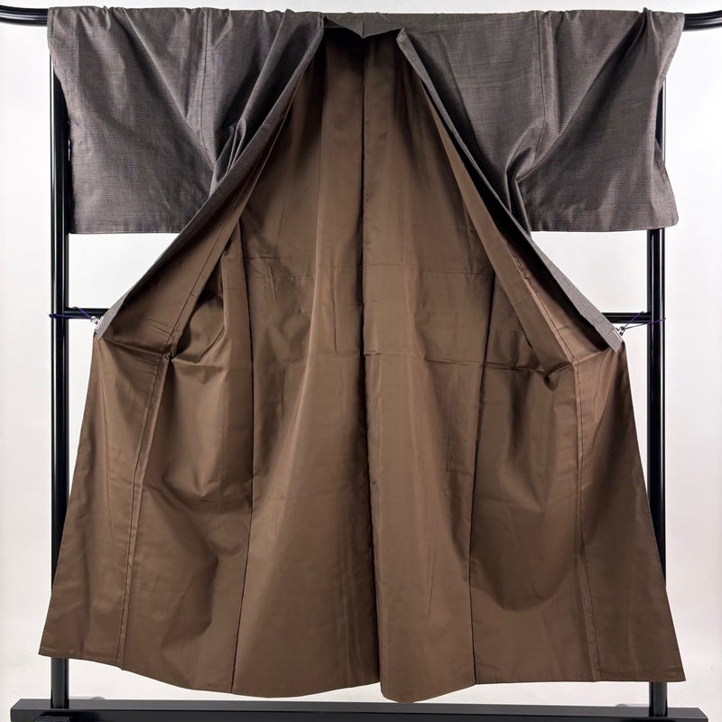 【男着物】 茶系 焦茶色 秀品 A 約150cm~約159cm 裄丈69cm以上 (L)size 袖丈50cm-60cm 7990-9980 美品 二万以下