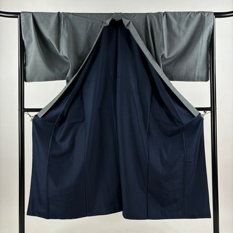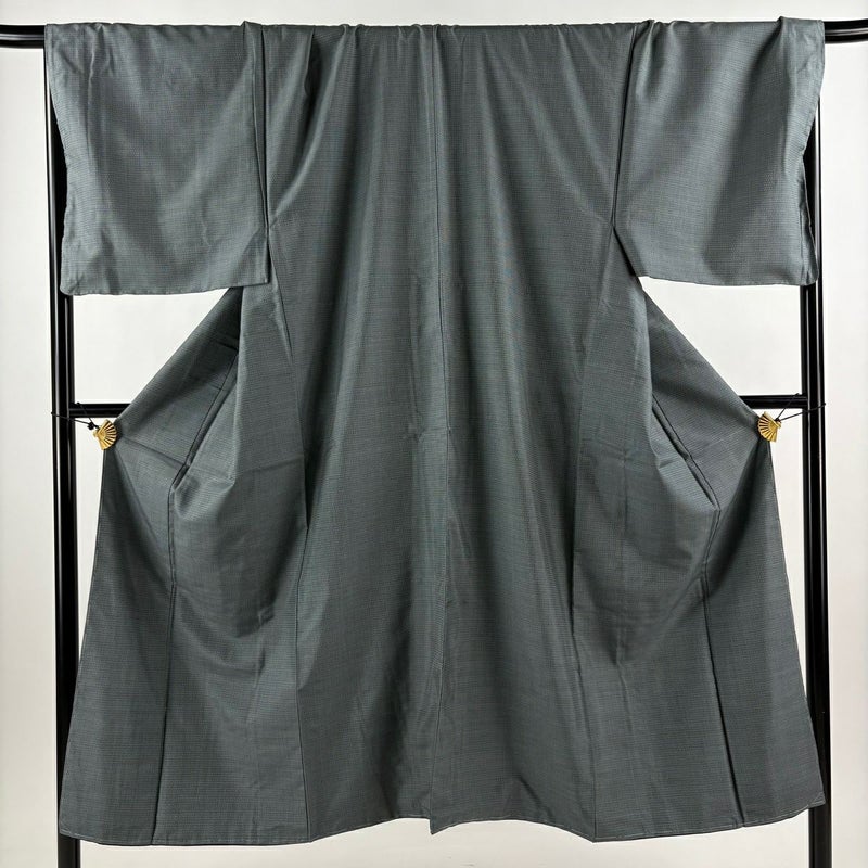 【男着物】 灰色系 灰緑 秀品 B 約140cm~約149cm 裄丈69cm以上 (L)size 袖丈49cm 4000-7980 二万以下