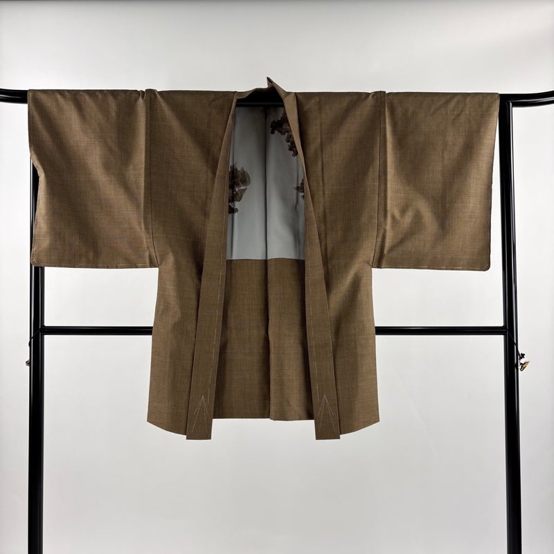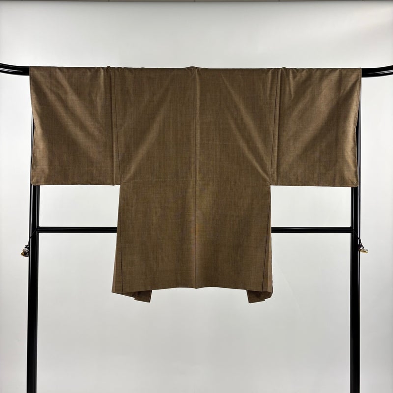 男性着物でございます。普段着やカジュアルなお洒落着として。 ワンランク上のアイテムとして着物を楽しんでみてはいかがでしょうか。 ※男性着物の着丈は身長から25~27cm引いたものを着用時の目安とさせていただきます。 ※身丈・裄丈の縫込みの長さは測っておりません。 着物は、裏地所々にヤケ、裏地所々にほこりの付着がございます。 羽織は、裏地所々に薄ヤケやシミがございます。 リユース品としては目立った染み傷なく、状態の良いお品でございます。 ※なお、厳しく商品の状態確認を行っておりますが、記載の汚れ以外にも見落とし箇所がある可能性がある旨ご了承いただけますと幸いです。 沢山の商品の中からご覧いただき誠にありがとうございます。