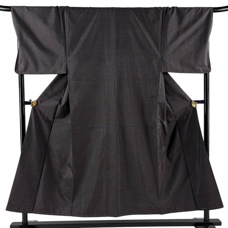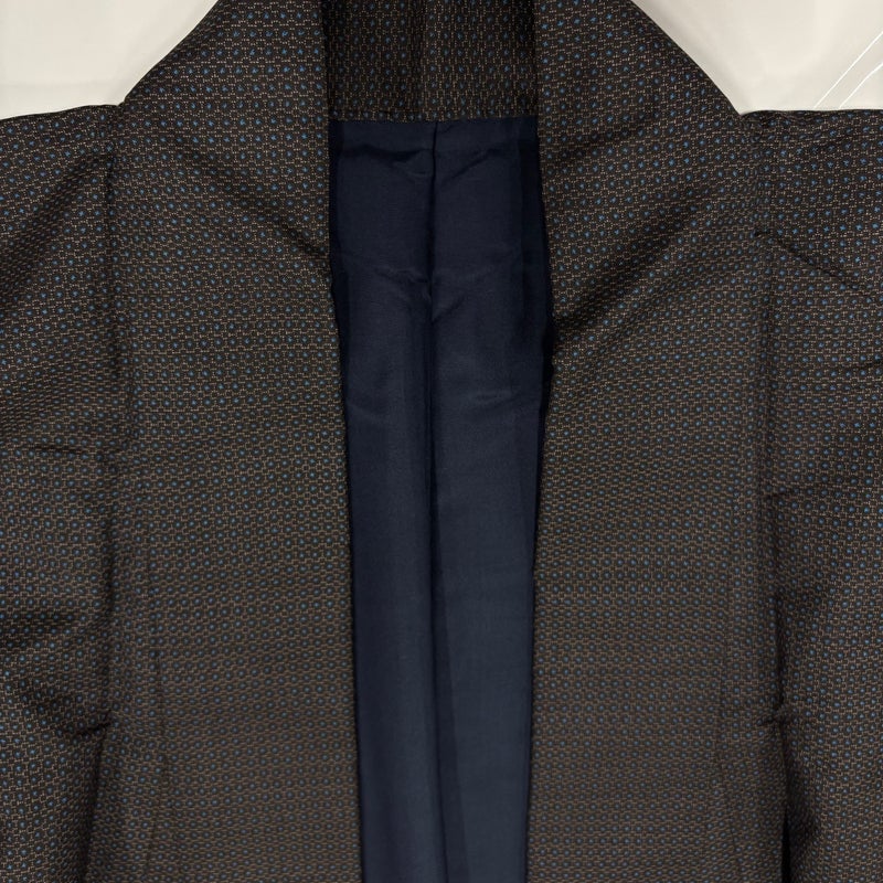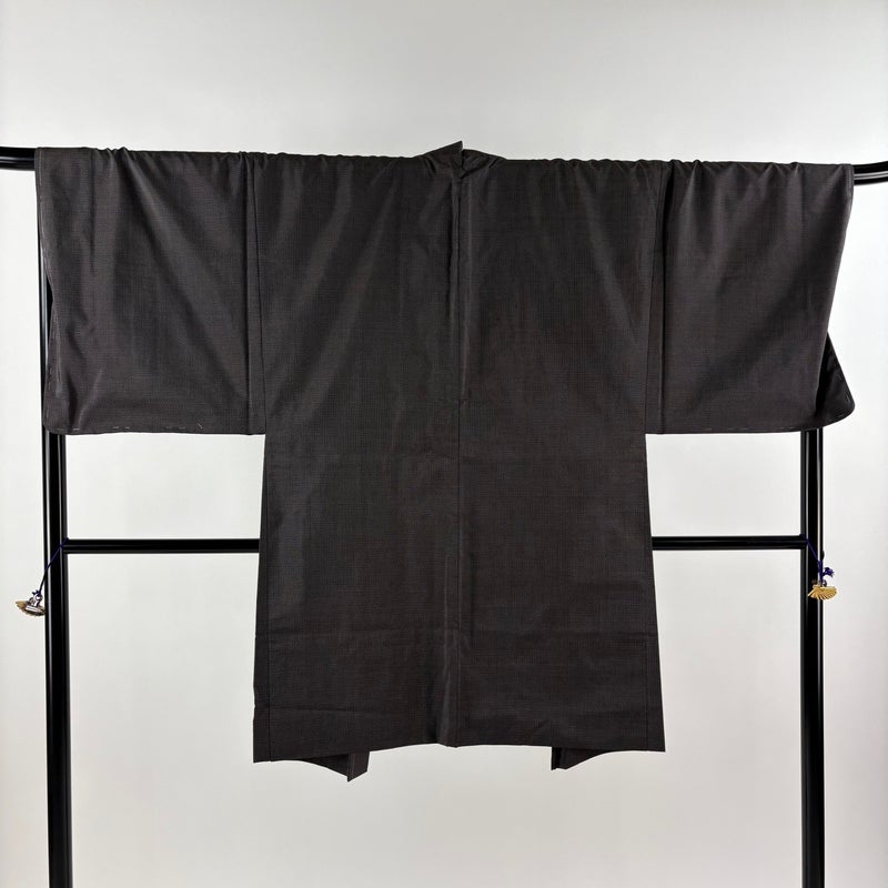 【男着物】 茶系 焦茶色 名品 A 約150cm~約159cm 裄丈69cm以上 (L)size 袖丈49cm 9990-29990 美品 二万以下