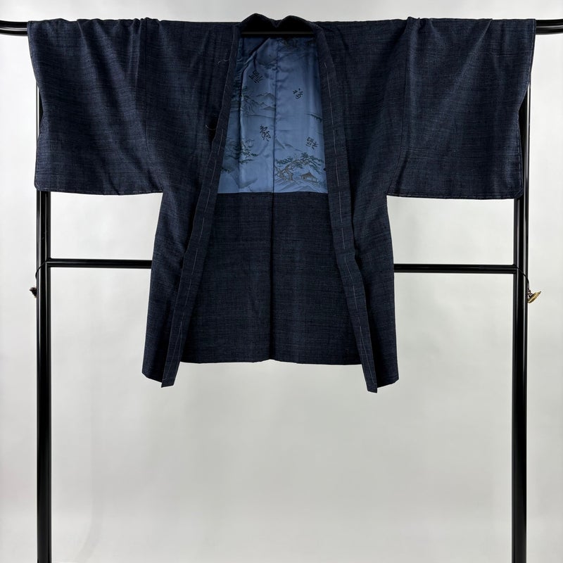 【男着物】 青系 紺色 名品 A 約140cm~約149cm 裄丈69cm以上 (M)size 袖丈49cm 9990-29990 美品 二万以下