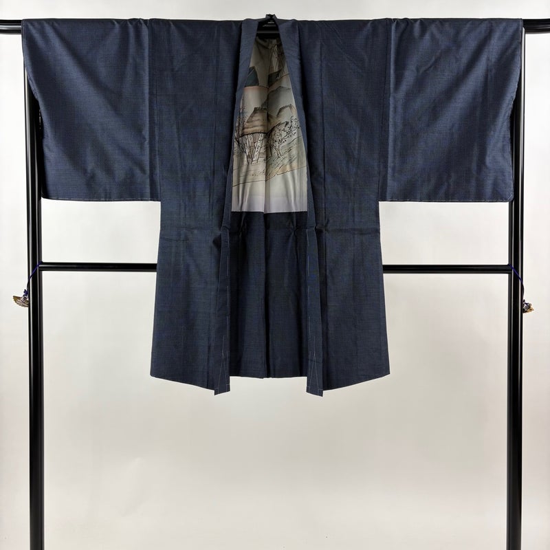 男性着物でございます。普段着やカジュアルなお洒落着として。 ワンランク上のアイテムとして着物を楽しんでみてはいかがでしょうか。 ※男性着物の着丈は身長から25~27cm引いたものを着用時の目安とさせていただきます。 着物の下前の腰付近と右胸に薄いシミ、後身頃の裾付近と両胸にシワ、裏地所々にシミがございます。 羽織の後身頃に線シミ、裏地所々にシミや薄いシミがございます。 リユース品としては良い状態で、まだまだご活用頂けると思われます。 ※なお、厳しく商品の状態確認を行っておりますが、記載の汚れ以外にも見落とし箇所がある可能性がある旨ご了承いただけますと幸いです。 沢山の商品の中からご覧いただき誠にありがとうございます。 【PR2】
