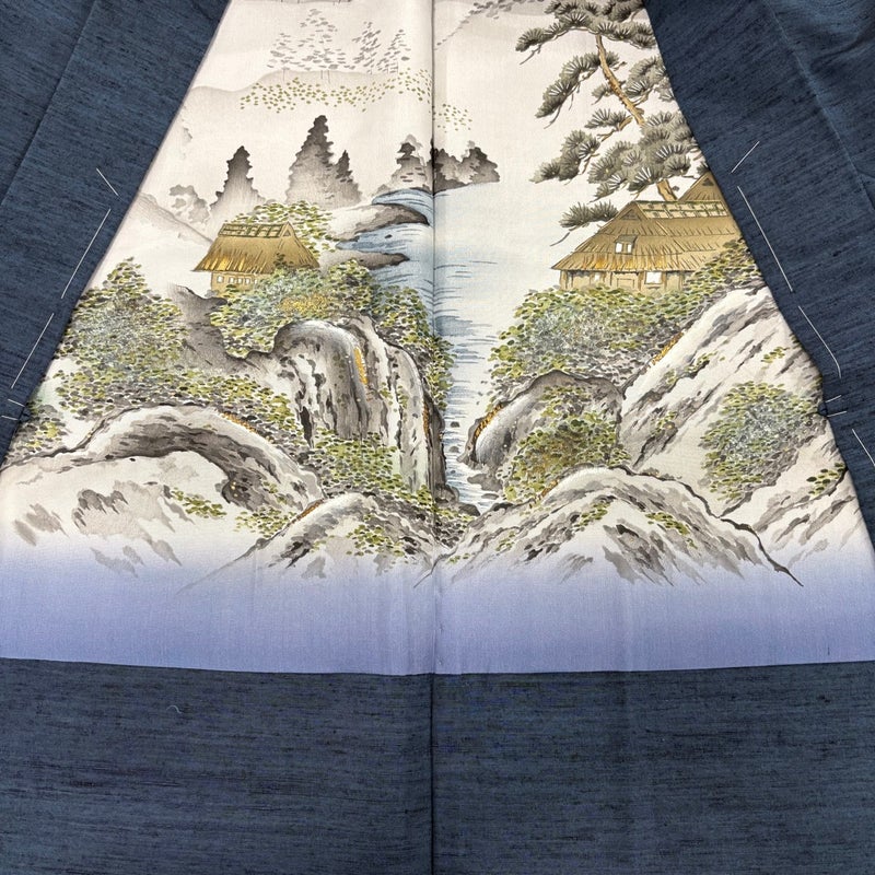 【男着物】 青系 紺色 秀品 A 約140cm~約149cm 裄丈69cm以上 (M)size 袖丈48cm 7990-9980 美品 二万以下