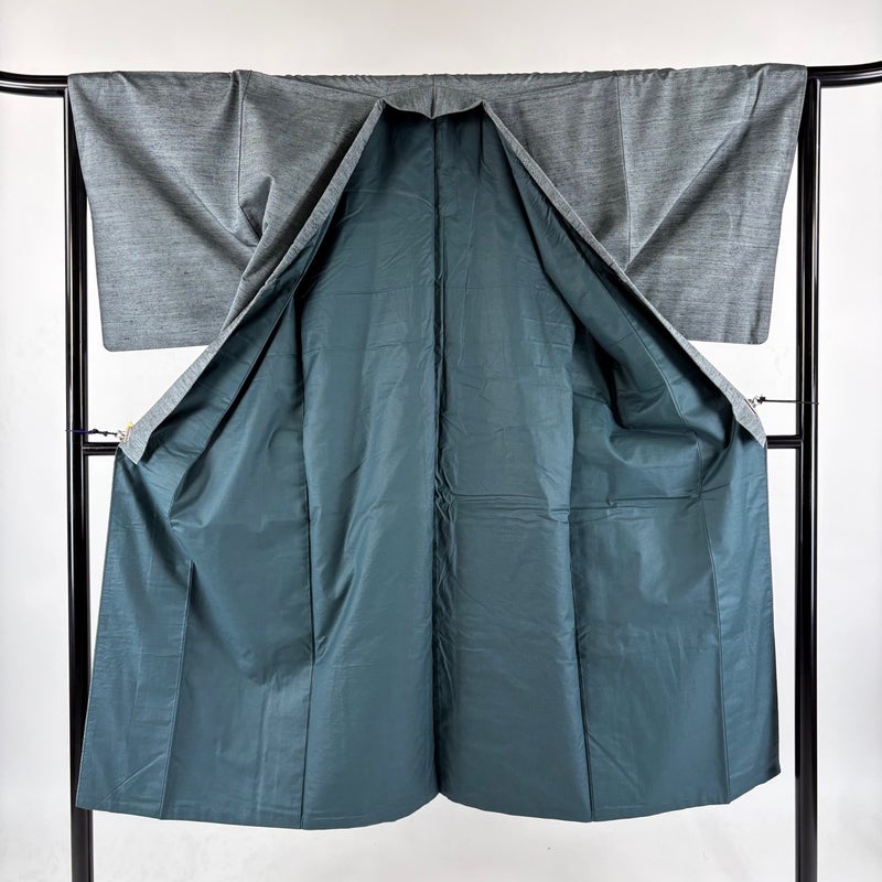 【男着物】 灰色系 灰緑 優品 A 約130cm~約139cm 裄丈66cm (M)size 袖丈50cm-60cm 4000-7980 美品 二万以下