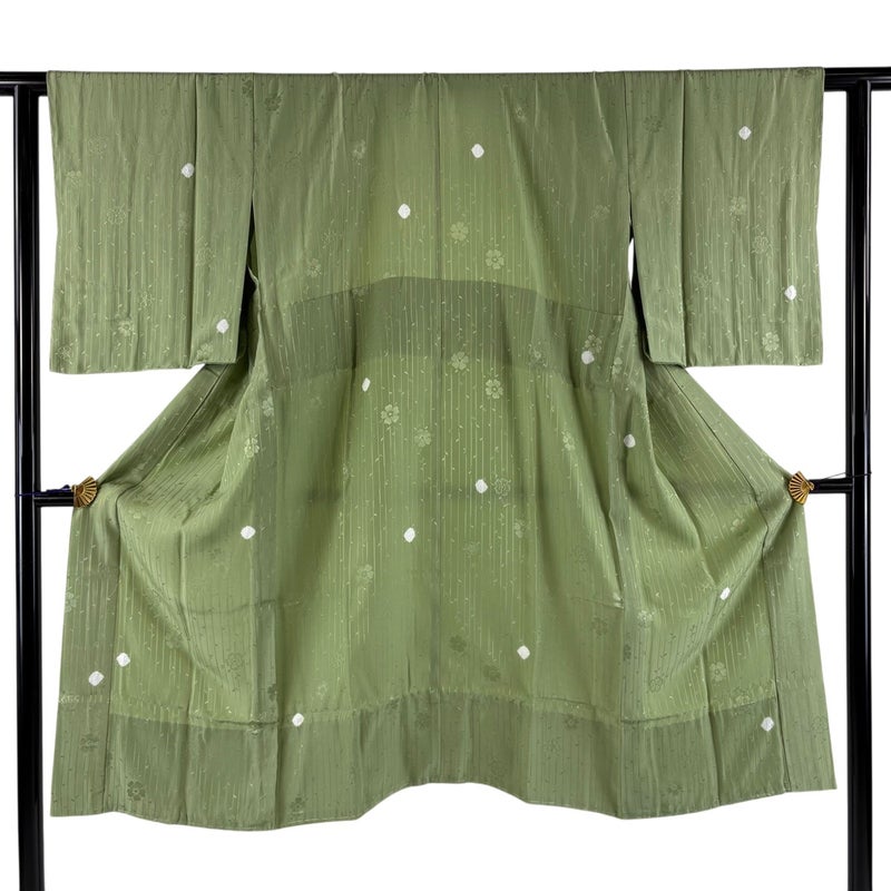 【長襦袢】 緑系 よもぎ色 秀品 A 約120cm~約129cm 裄丈62cm以下 (S)size 袖丈48cm 7990-9980 美品 二万以下