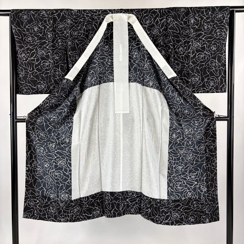 【長襦袢】 黒系 黒 秀品 A 約130cm~約139cm 裄丈65cm (M)size 袖丈50cm-60cm 7990-9980 美品 二万以下