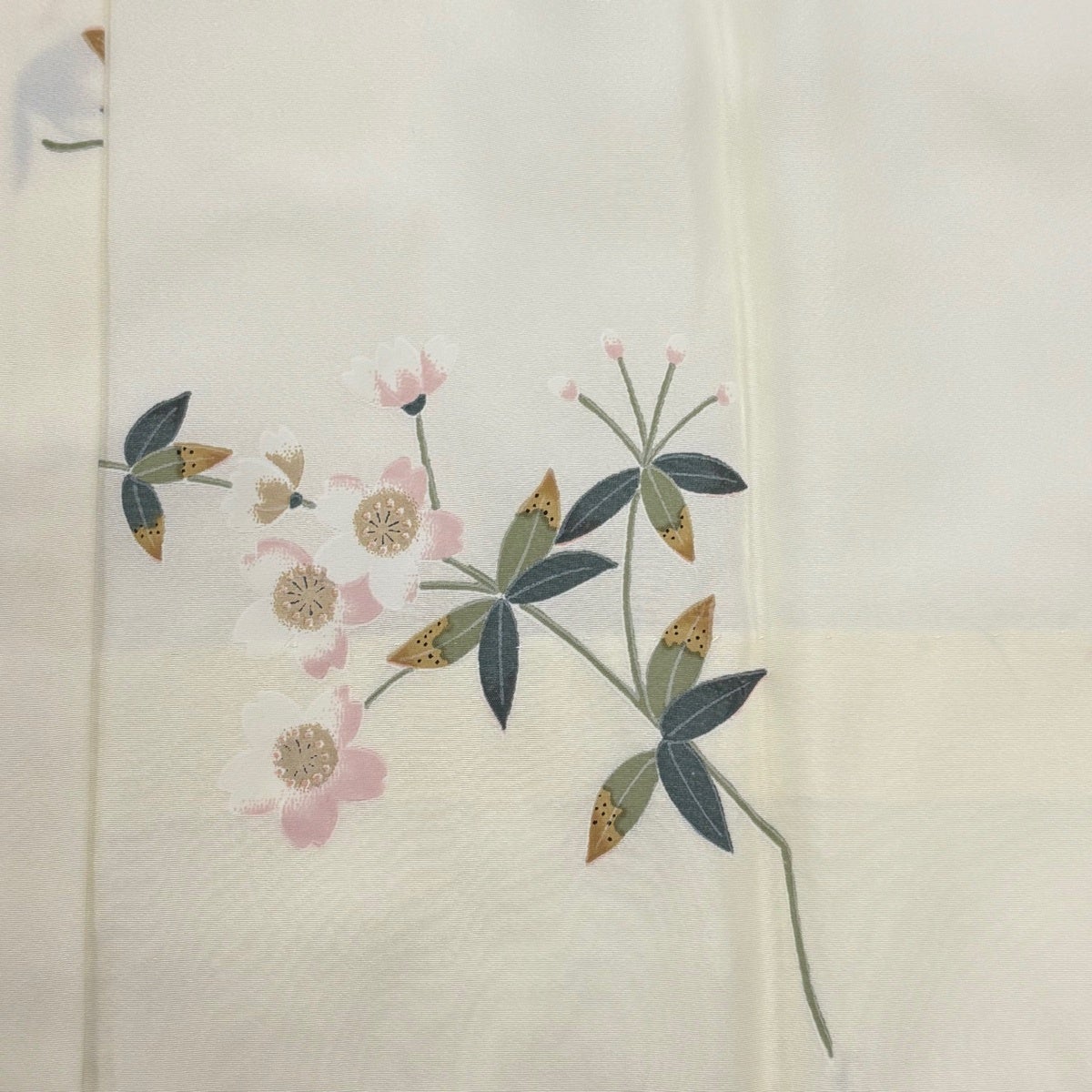 【美品】 長襦袢 身丈120cm 裄丈61cm S 小花 クリーム 正絹 秀品