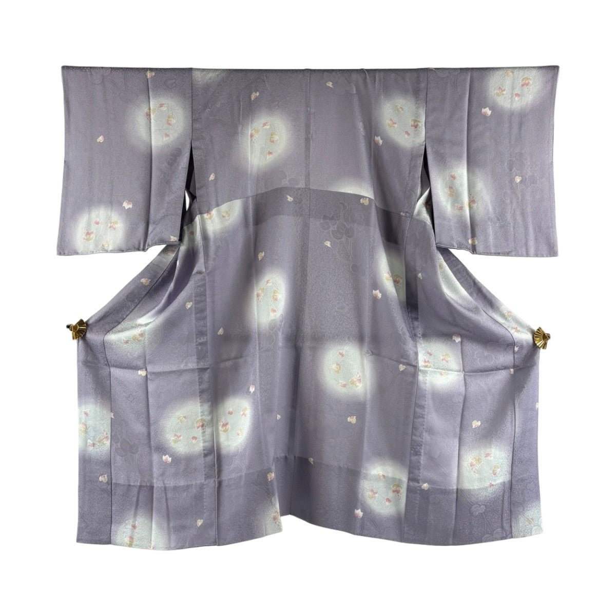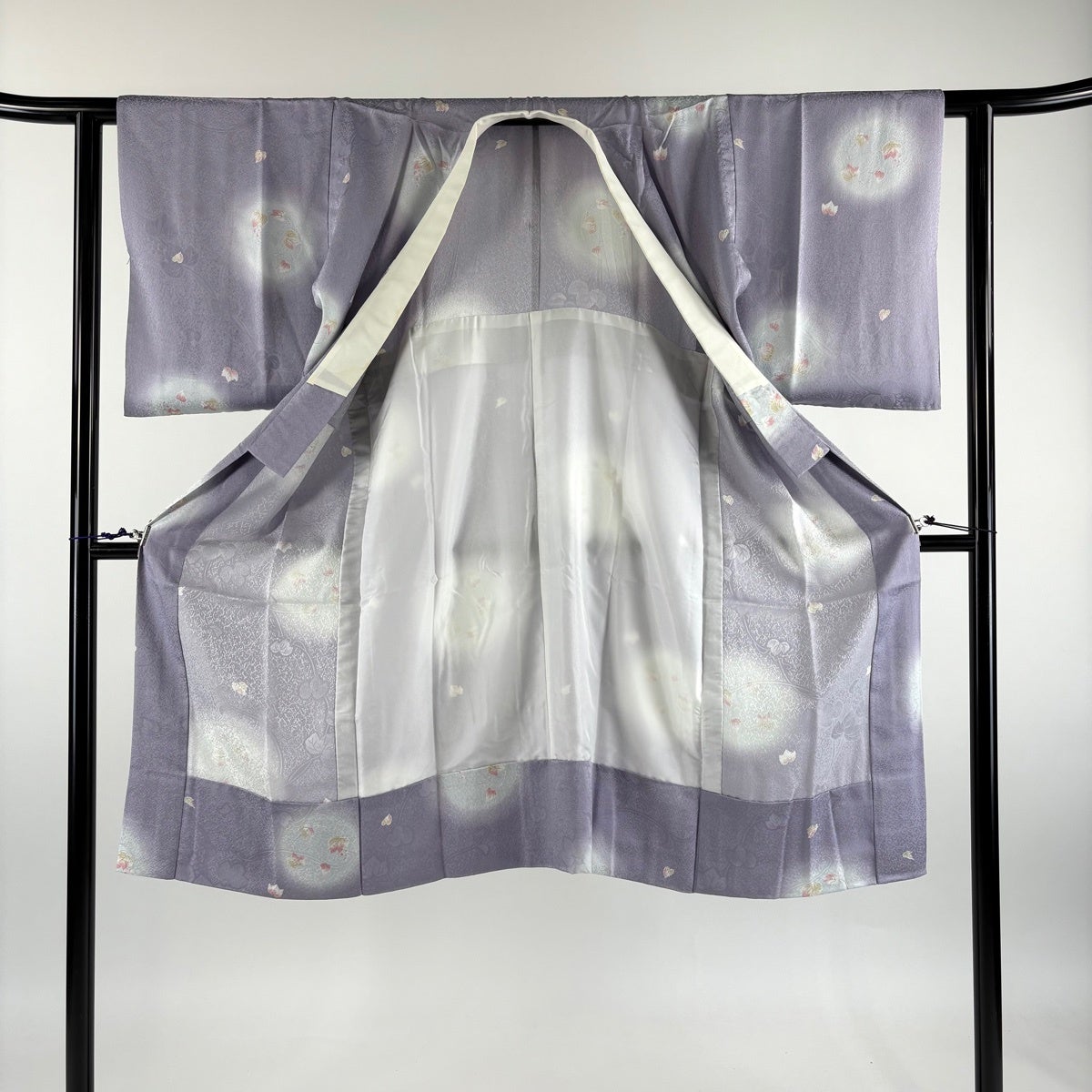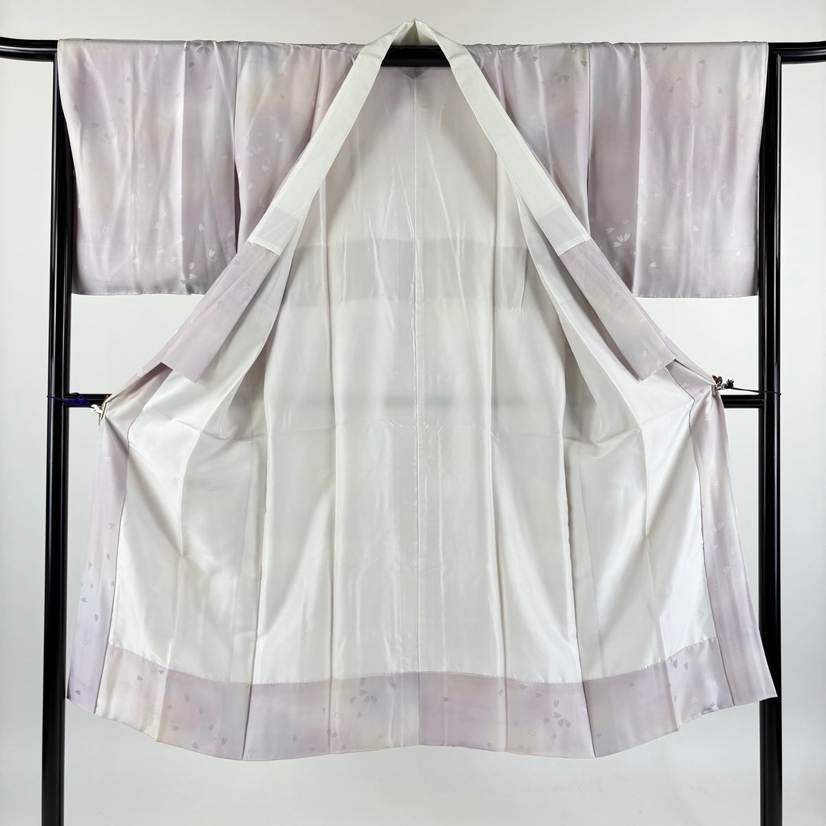長襦袢 身丈129.5cm 裄丈66cm M 梅 地紋 ぼかし 灰紫 正絹 秀品