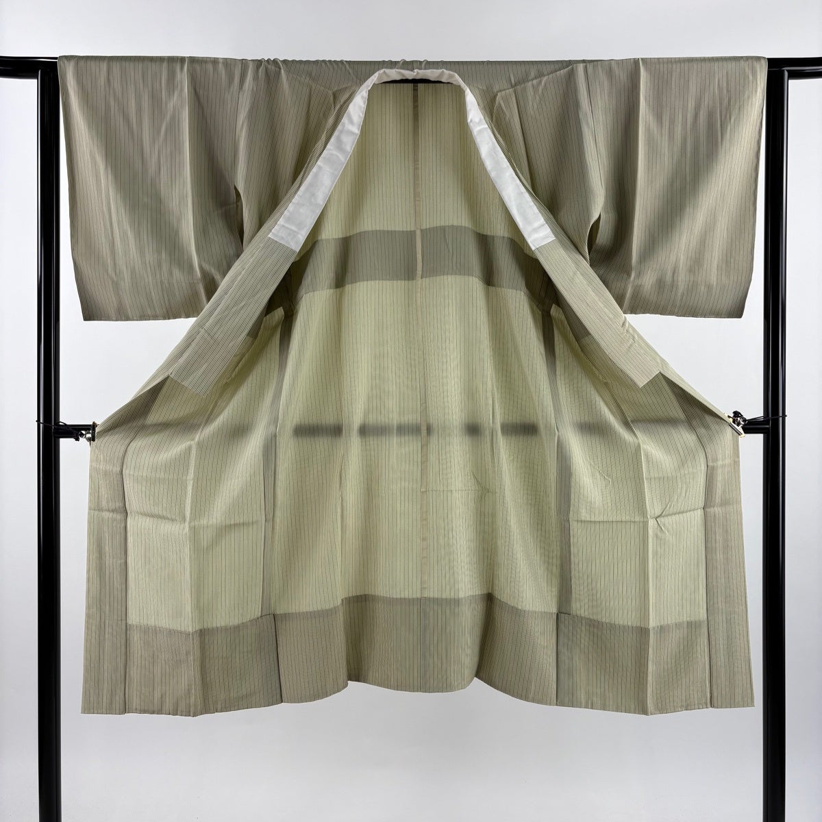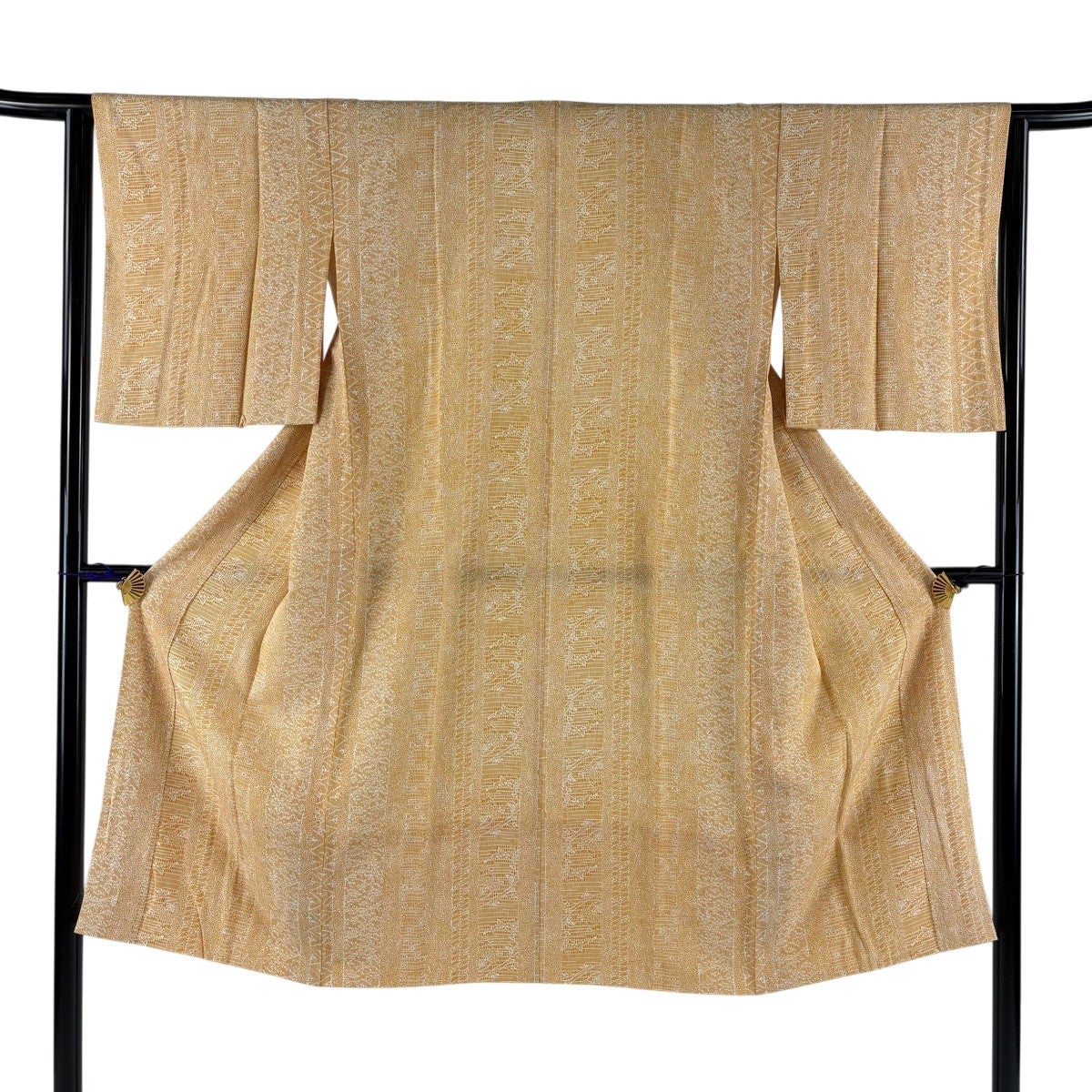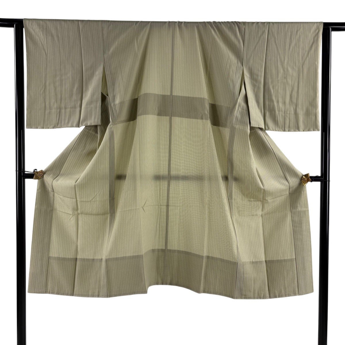 【美品】 長襦袢 身丈121cm 裄丈61cm S 縞 絞り ベージュ 正絹 秀品