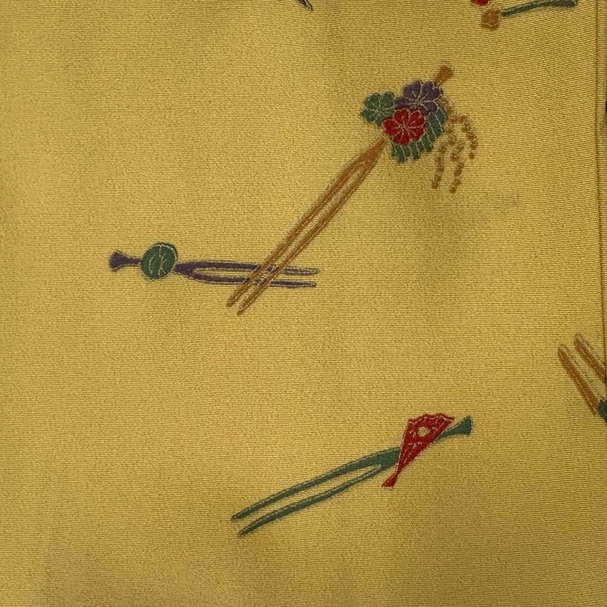 【美品】 長襦袢 身丈120cm 裄丈64cm M 野菜 薄黄 正絹 秀品