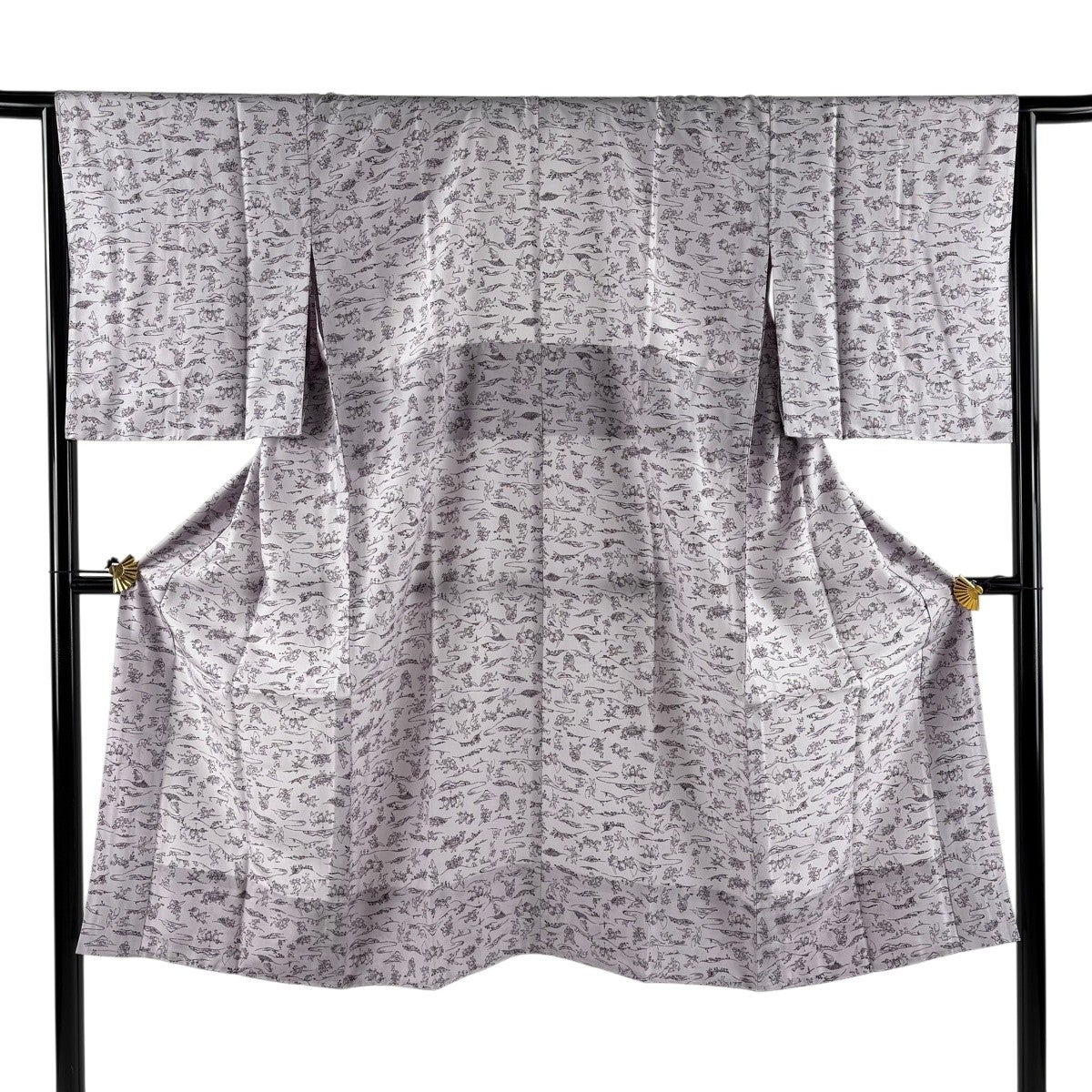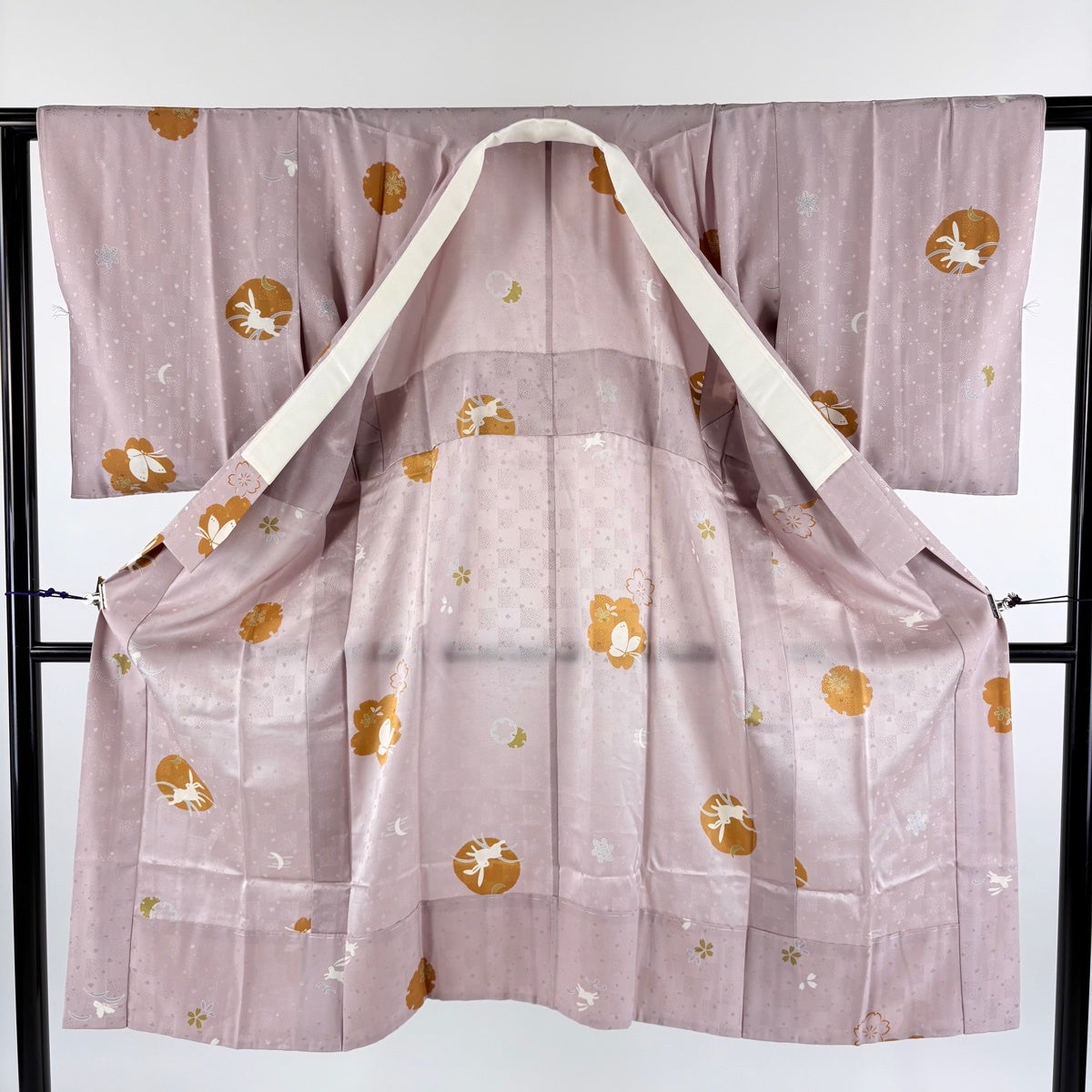 【美品】 長襦袢 身丈118.5cm 裄丈62.5cm S うさぎ 芝 薄紫 正絹 秀品