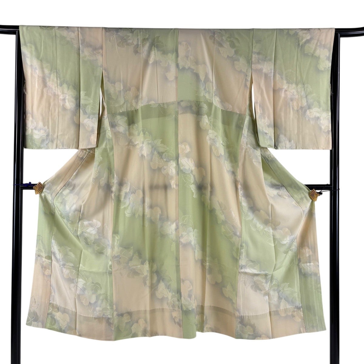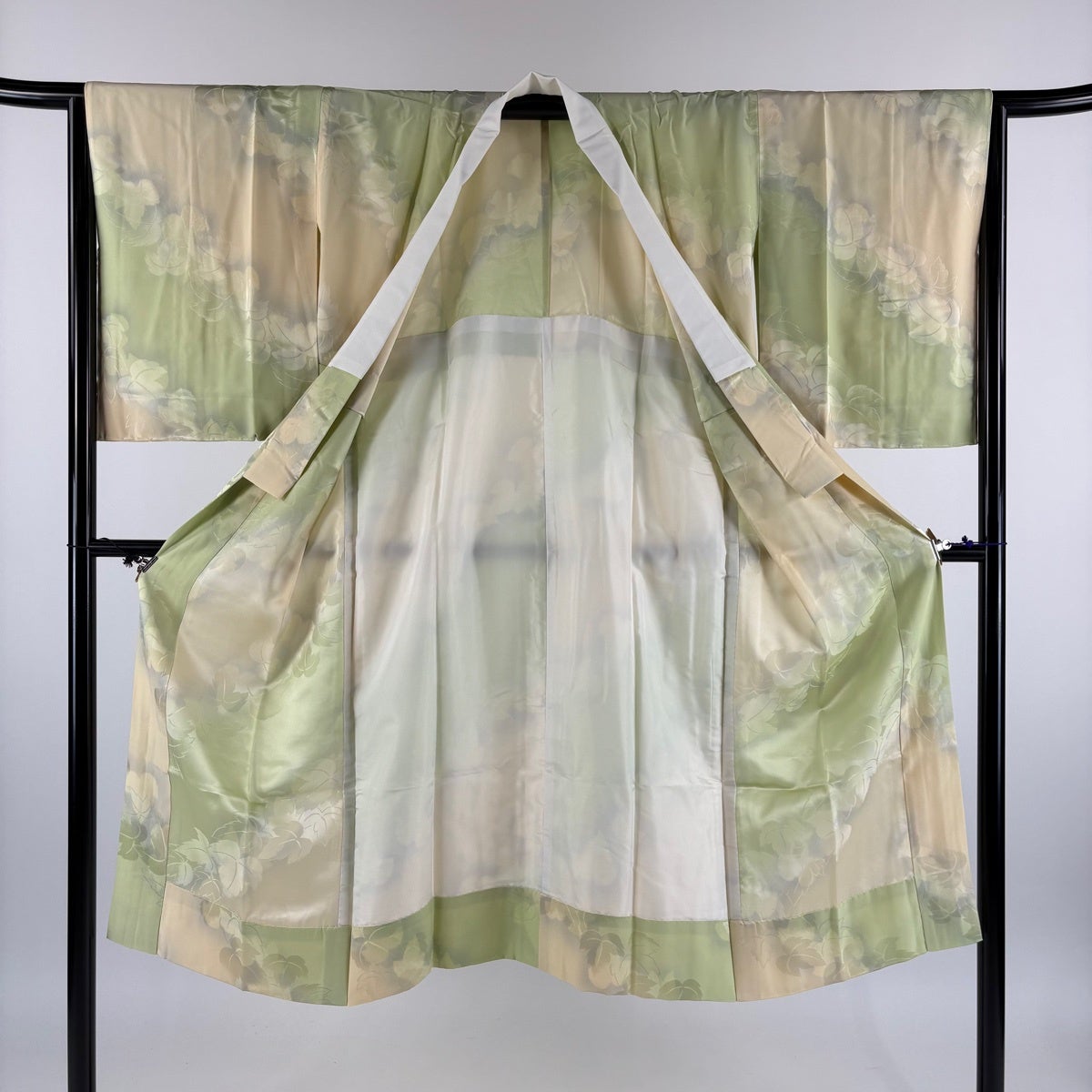 【美品】 長襦袢 身丈125cm 裄丈65.5cm M 草花 霞 ぼかし 薄緑 正絹 秀品