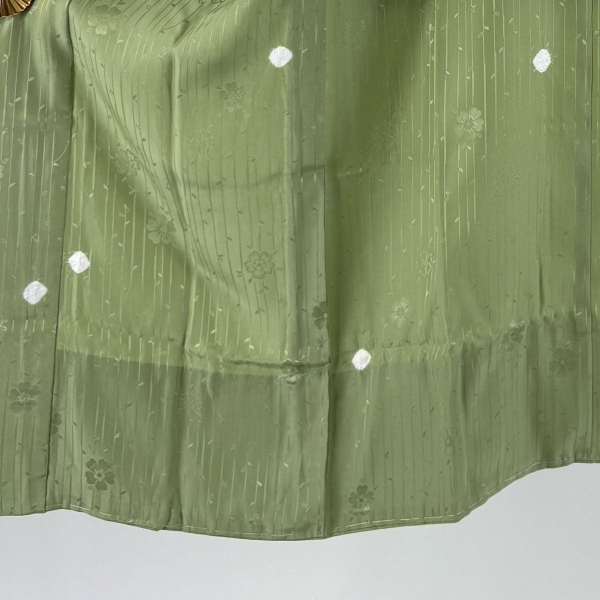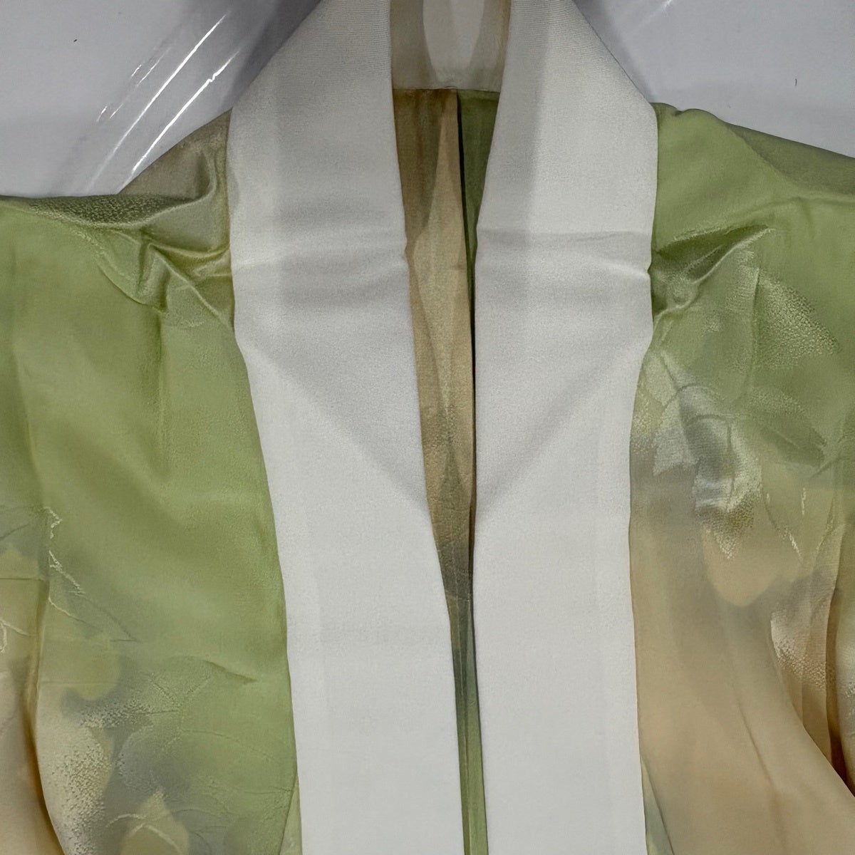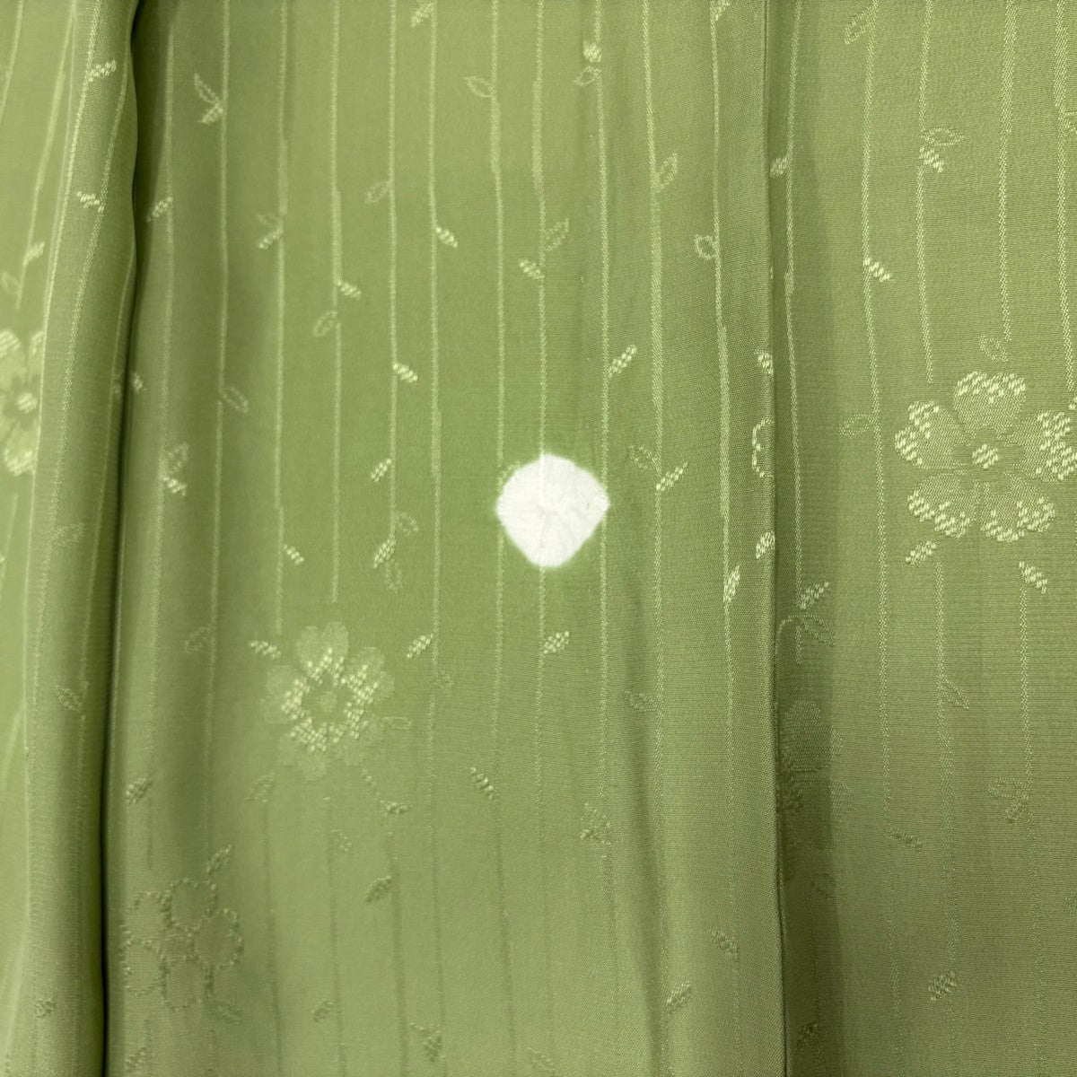 長襦袢 身丈124.5cm 裄丈63.5cm S 花柄 地紋 ぼかし 抹茶色 正絹 秀品