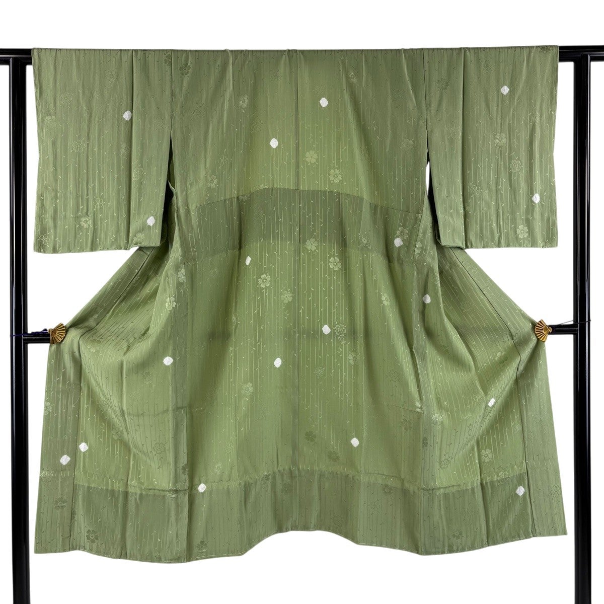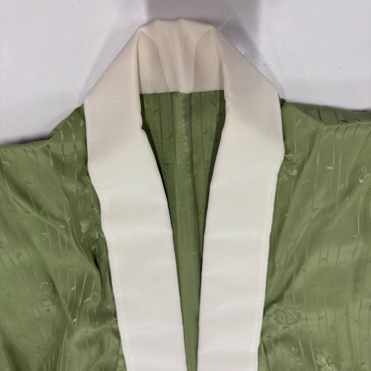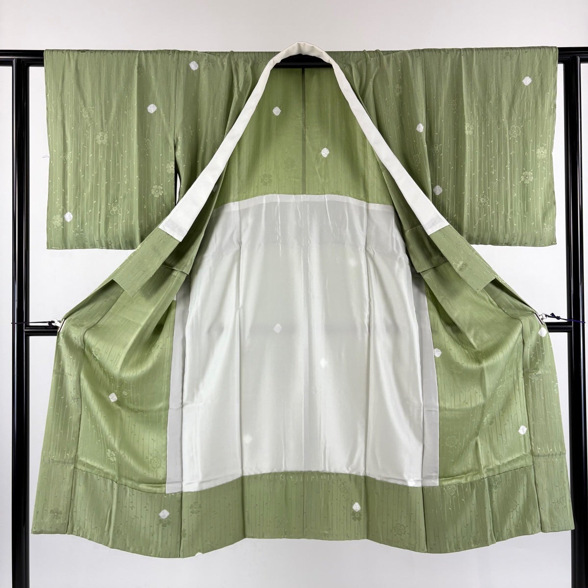 長襦袢 身丈124.5cm 裄丈63.5cm S 花柄 地紋 ぼかし 抹茶色 正絹 秀品
