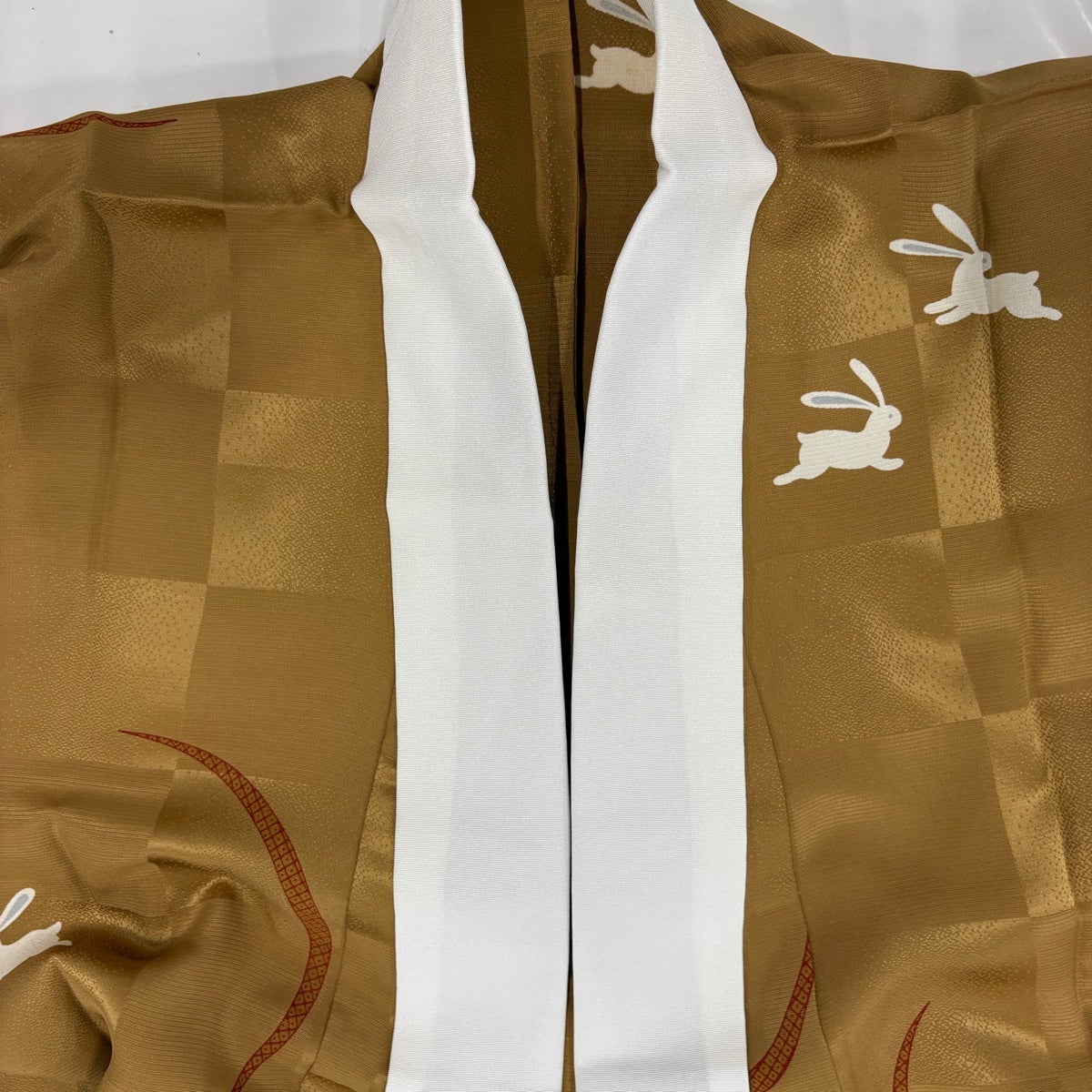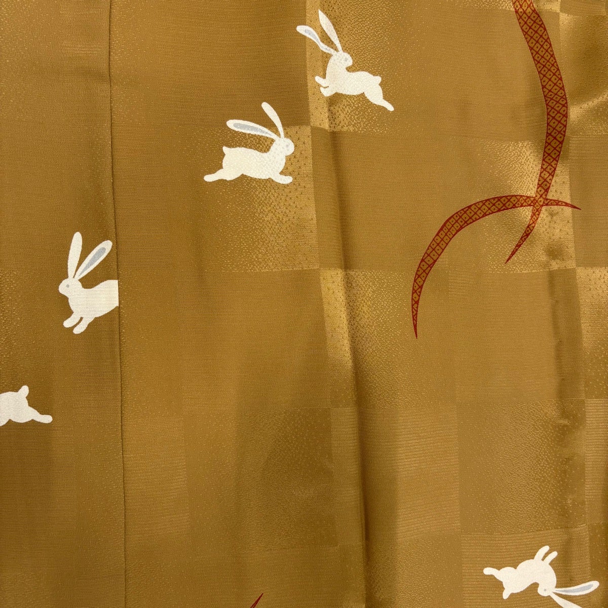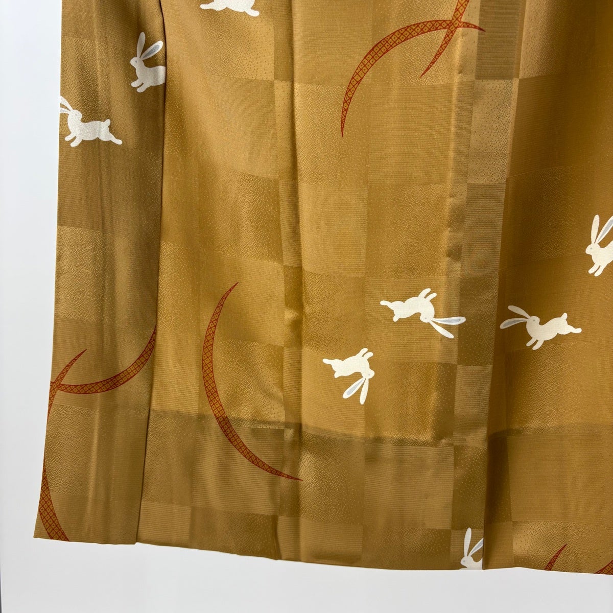 長襦袢 身丈122cm 裄丈61cm S うさぎ 山吹茶色 正絹 秀品