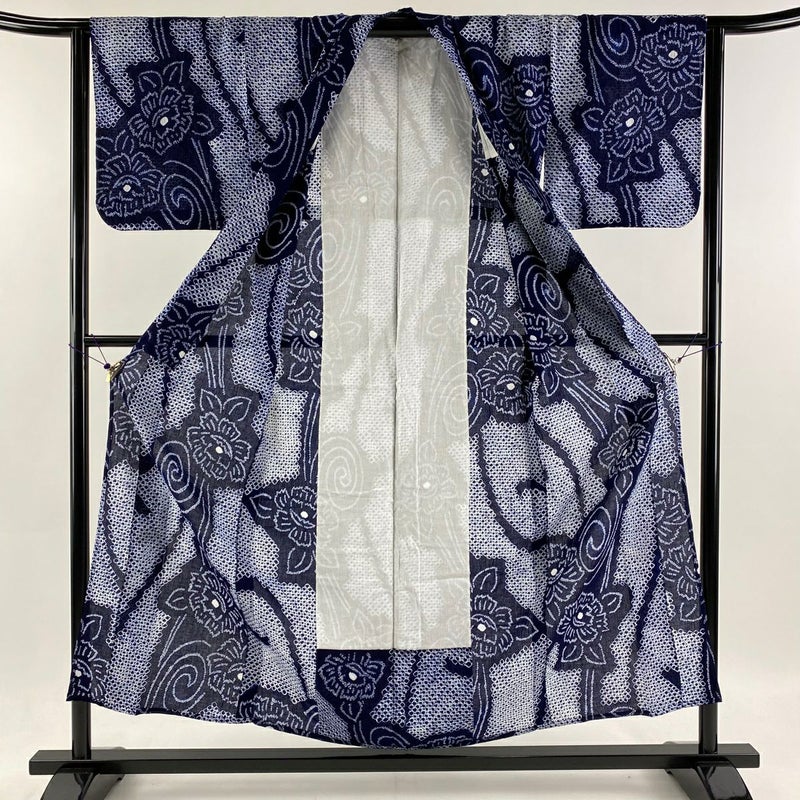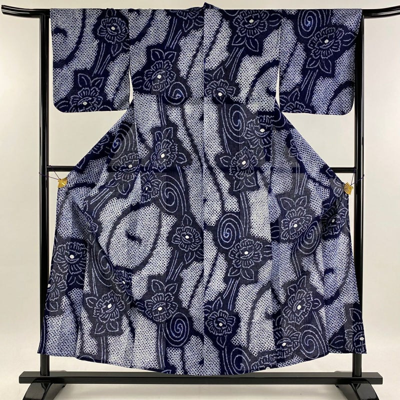 【浴衣】 青系 紺色 名品 A 約150cm~約159cm 裄丈63cm-64cm (M)size 袖丈46cm以下 9990-29990 美品 五万以下