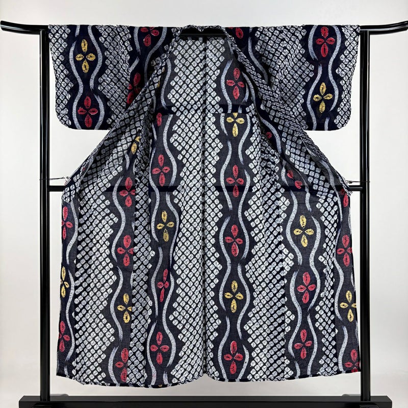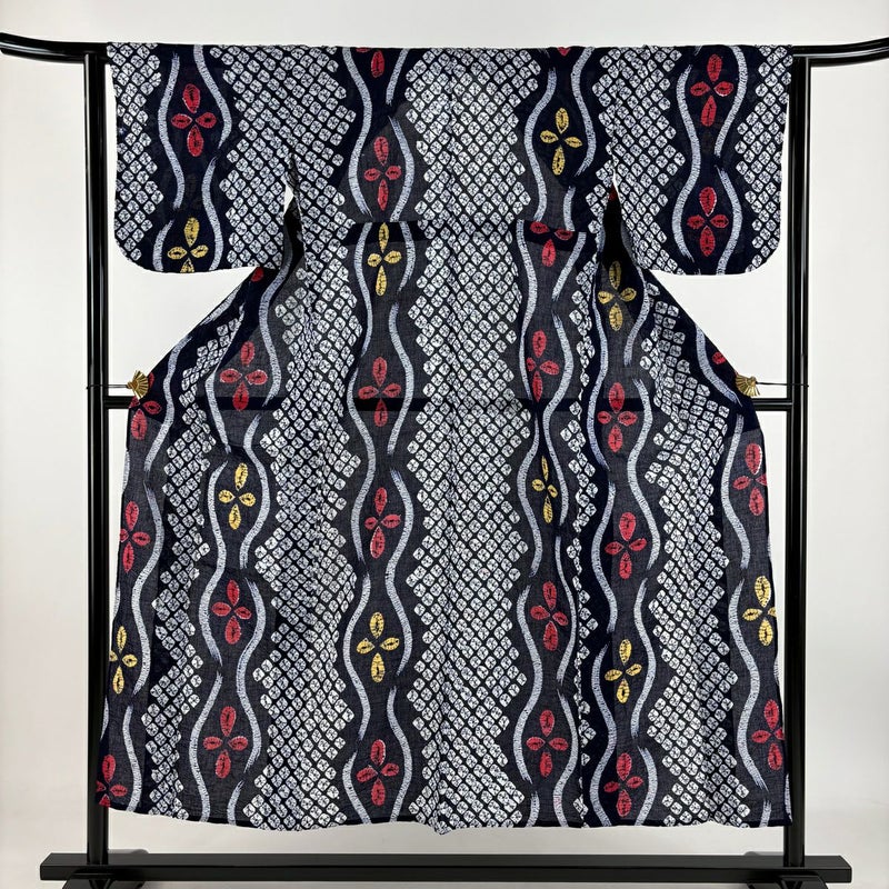 【浴衣】 青系 紺色 名品 B 約140cm~約149cm 裄丈63cm-64cm (S)size 袖丈46cm以下 4000-7980 二万以下