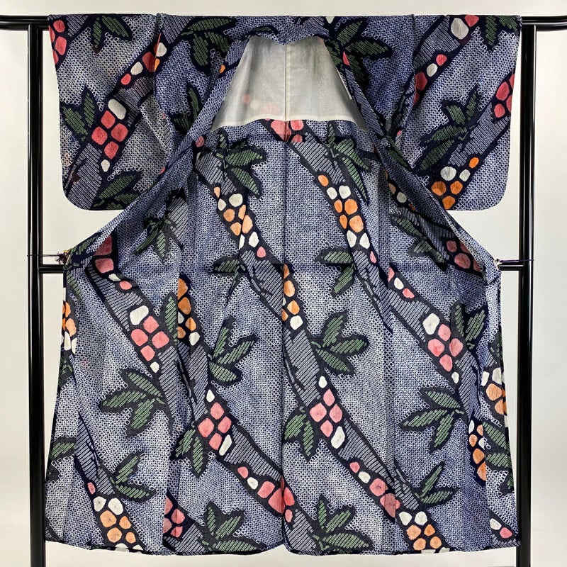 【浴衣】 青系 紺色 名品 C 約140cm~約149cm 裄丈63cm-64cm (M)size 袖丈50cm-60cm 4000-7980 二万以下