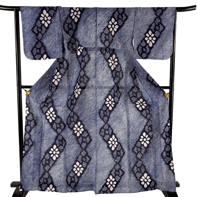 【浴衣】 青系 紺色 名品 A 約160cm~約169cm 裄丈65cm (M)size 袖丈46cm以下 9990-29990 美品 五万以下