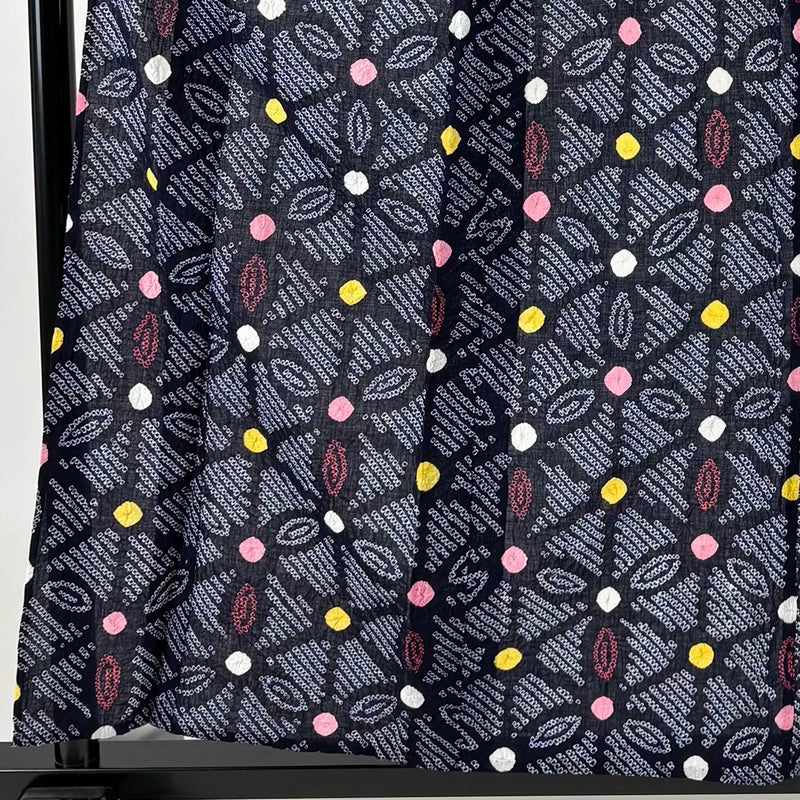 夏のお洒落着として、夏祭りや花火大会、盆踊りなど多くの場面でお召し頂ける夏の定番浴衣です。 小物をアレンジすることで何通りにも着こなすことが出来る一品です。 ※身丈・裄丈の縫込みの長さは測っておりません。 両袖前後と両胸にシワ、表地所々にほこりの付着がございます。 裏地にほこりの付着がございます。 リユース品としては目立った染み傷なく、状態の良いお品でございます。 ※なお、厳しく商品の状態確認を行っておりますが、記載の汚れ以外にも見落とし箇所がある可能性がある旨ご了承いただけますと幸いです。 沢山の商品の中からご覧いただき誠にありがとうございます。