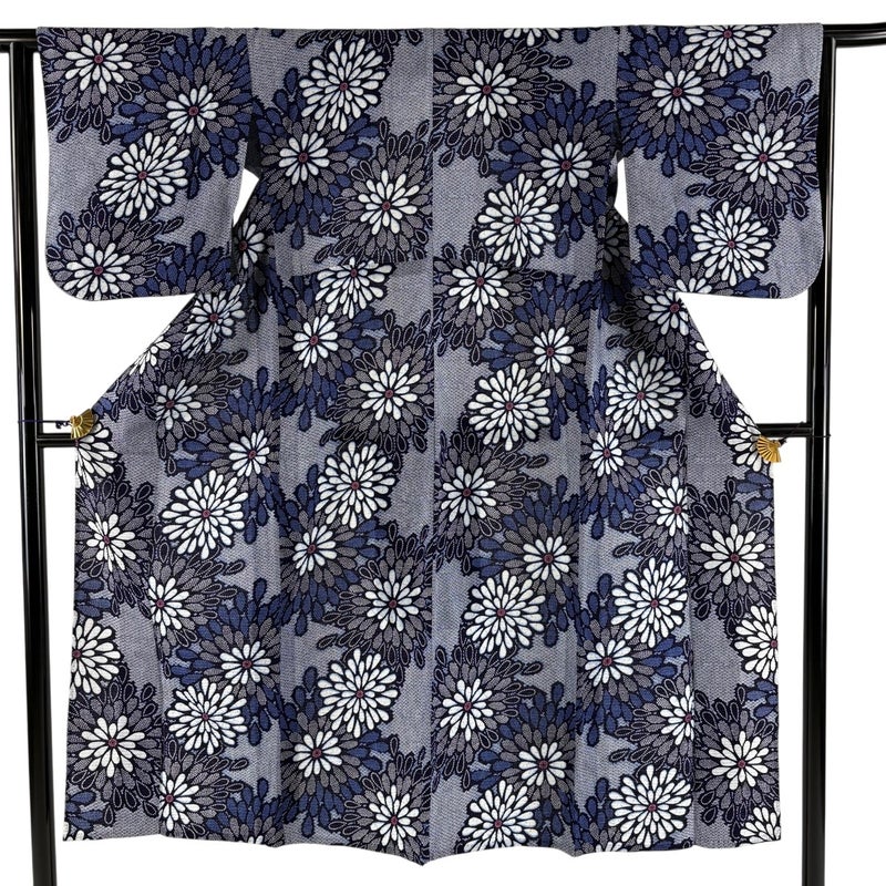 【浴衣】 灰色系 青灰色 名品 A 約140cm~約149cm 裄丈63cm-64cm (S)size 袖丈46cm以下 9990-29990 美品 五万以下