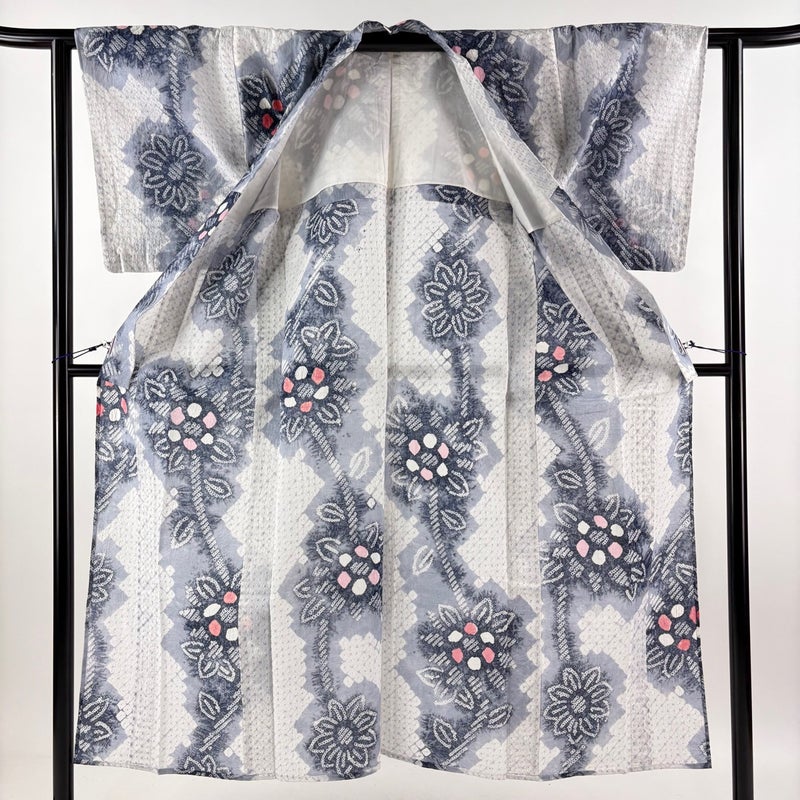 【浴衣】 灰色系 灰紫 名品 A 約140cm~約149cm 裄丈62cm以下 (S)size 袖丈48cm 9990-29990 美品 五万以下