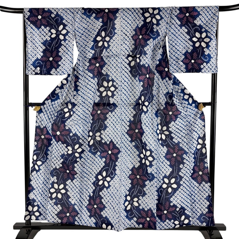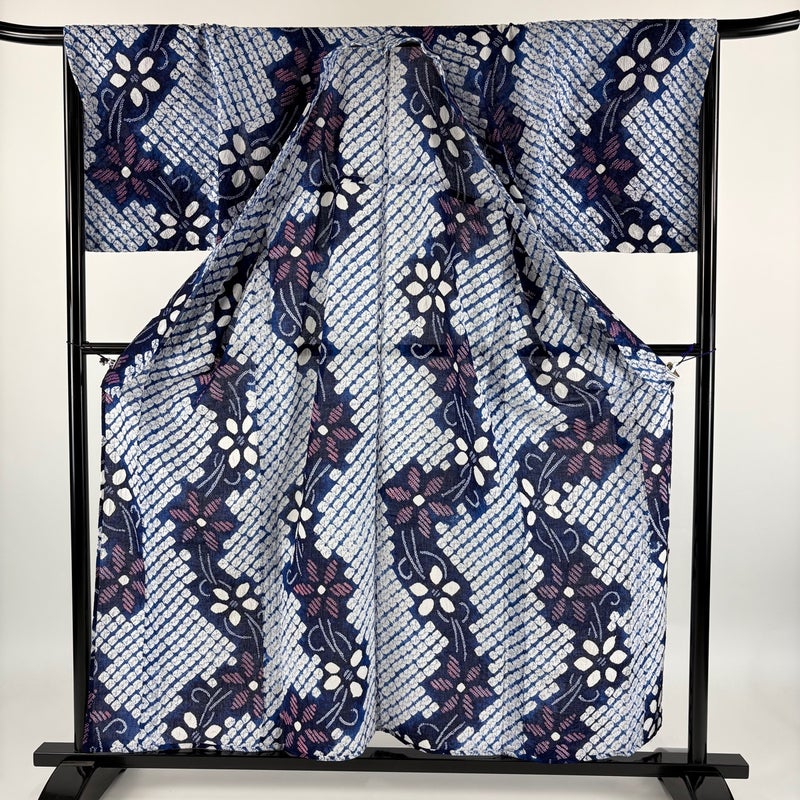 【浴衣】 青系 紺色 名品 B 約150cm~約159cm 裄丈67cm-68cm (L)size 袖丈48cm 9990-29990 五万以下