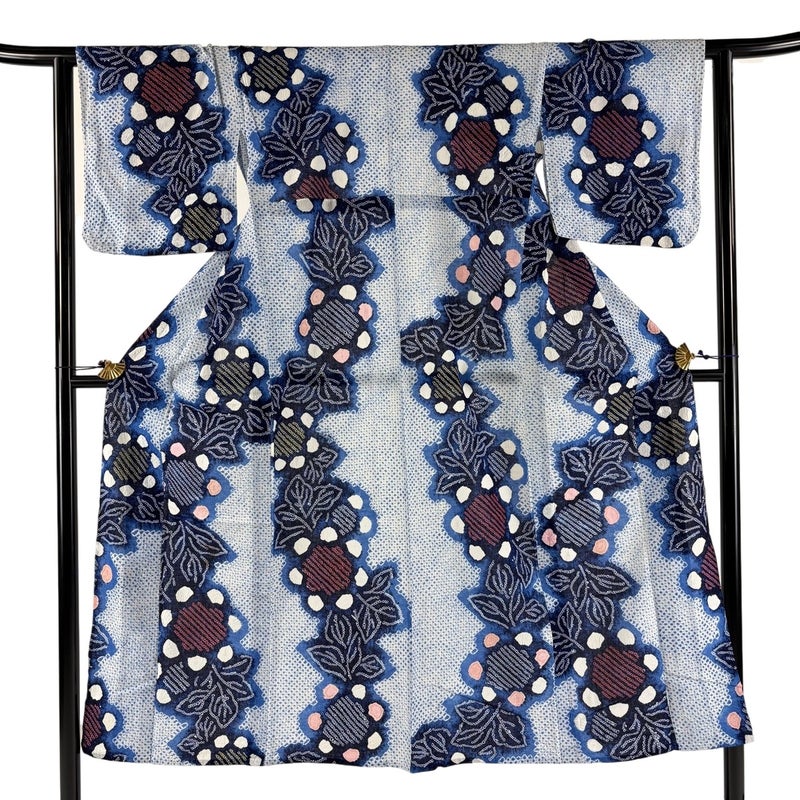【着物ランク】名品 【素材】綿 【身丈】約147cm 【裄丈】約63cm 【袖丈】約43.5cm 【袖幅】約32.5cm 【前幅】約22.5cm 【後幅】約31.5cm 【サイズ】S 【状態ランク】ランクB 【着物着用シーン】お洒落着用、カジュアル