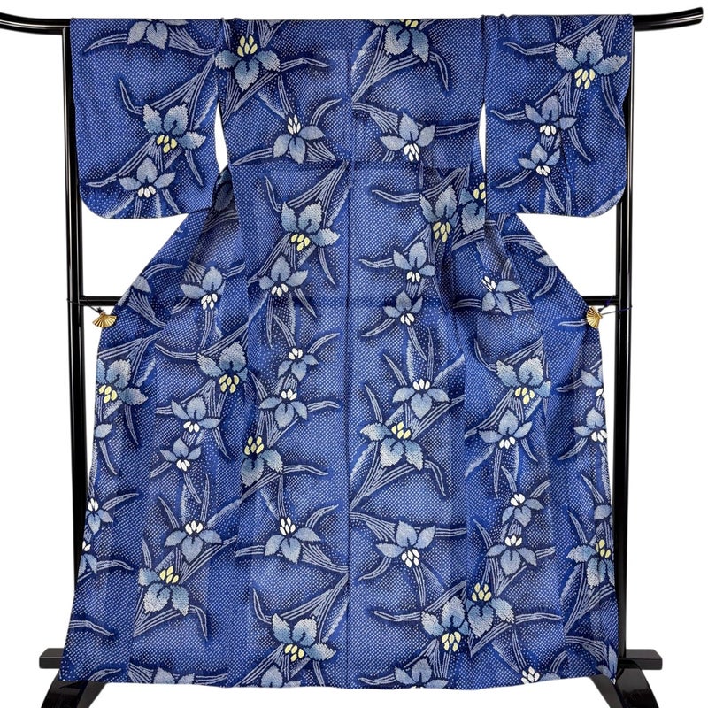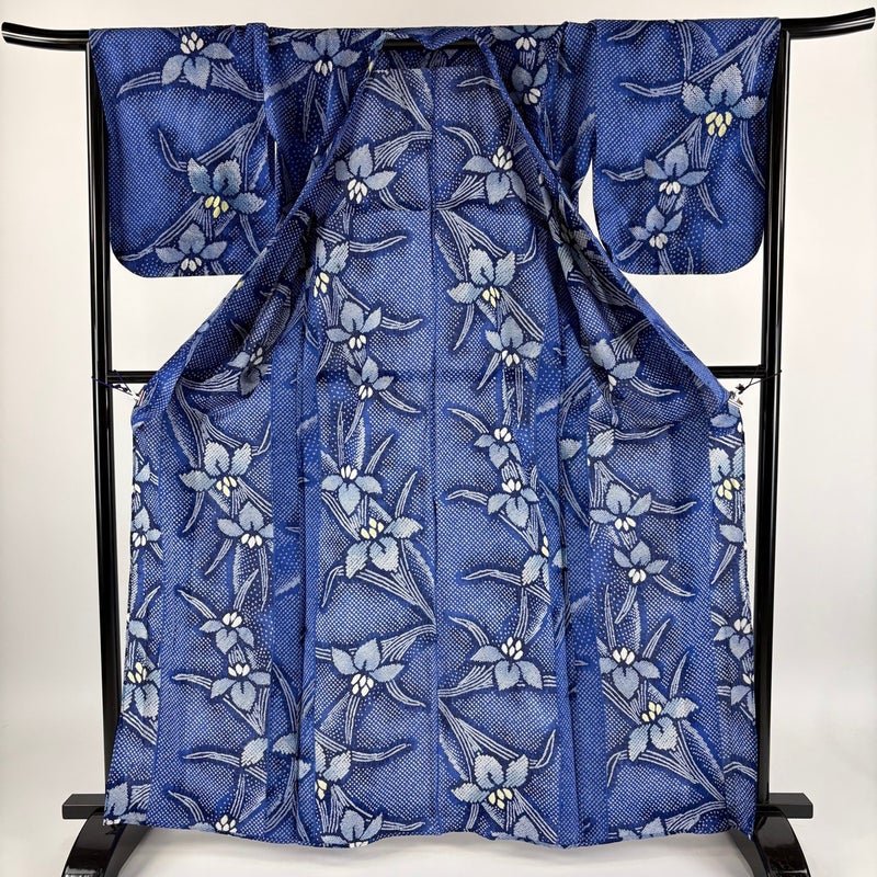 【浴衣】 青系 青 名品 A 約160cm~約169cm 裄丈66cm (M)size 袖丈48cm 9990-29990 美品 五万以下