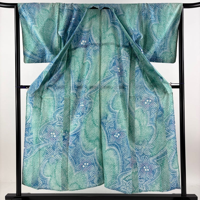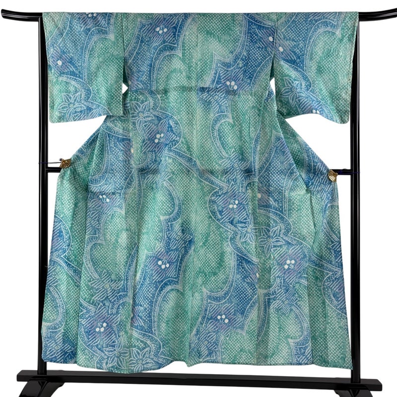 【浴衣】 青系 青緑 名品 B 約150cm~約159cm 裄丈63cm-64cm (M)size 袖丈48cm 9990-29990 五万以下