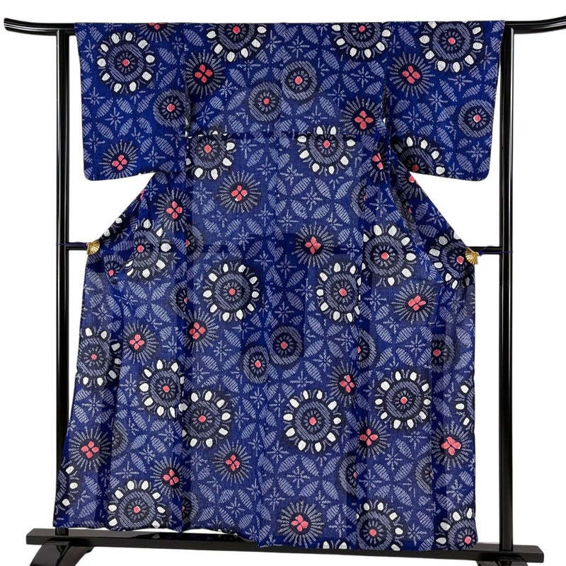 【着物ランク】名品 【素材】綿 【身丈】約158.5cm 【裄丈】約61cm 【袖丈】約48.5cm 【袖幅】約32cm 【前幅】約25cm 【後幅】約29.5cm 【サイズ】S 【状態ランク】ランクA 【着物着用シーン】お洒落着用、カジュアル