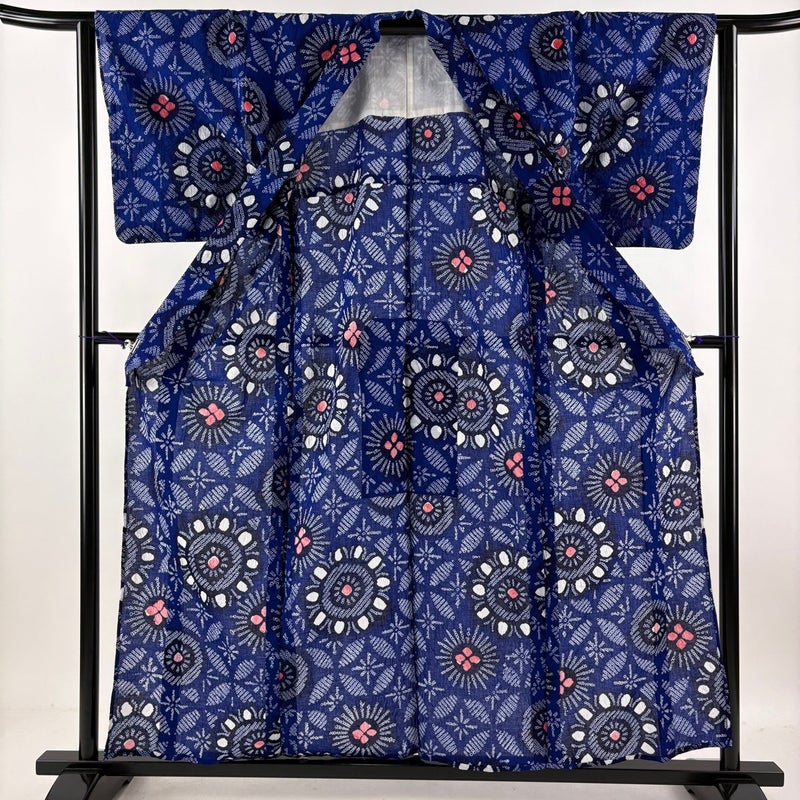 夏のお洒落着として、夏祭りや花火大会、盆踊りなど多くの場面でお召し頂ける夏の定番浴衣です。 小物をアレンジすることで何通りにも着こなすことが出来る一品です。 ※身丈・裄丈の縫込みの長さは測っておりません。 リユース品としては目立った染み傷なく、状態の良いお品でございます。 ※なお、厳しく商品の状態確認を行っておりますが、記載の汚れ以外にも見落とし箇所がある可能性がある旨ご了承いただけますと幸いです。 沢山の商品の中からご覧いただき誠にありがとうございます。