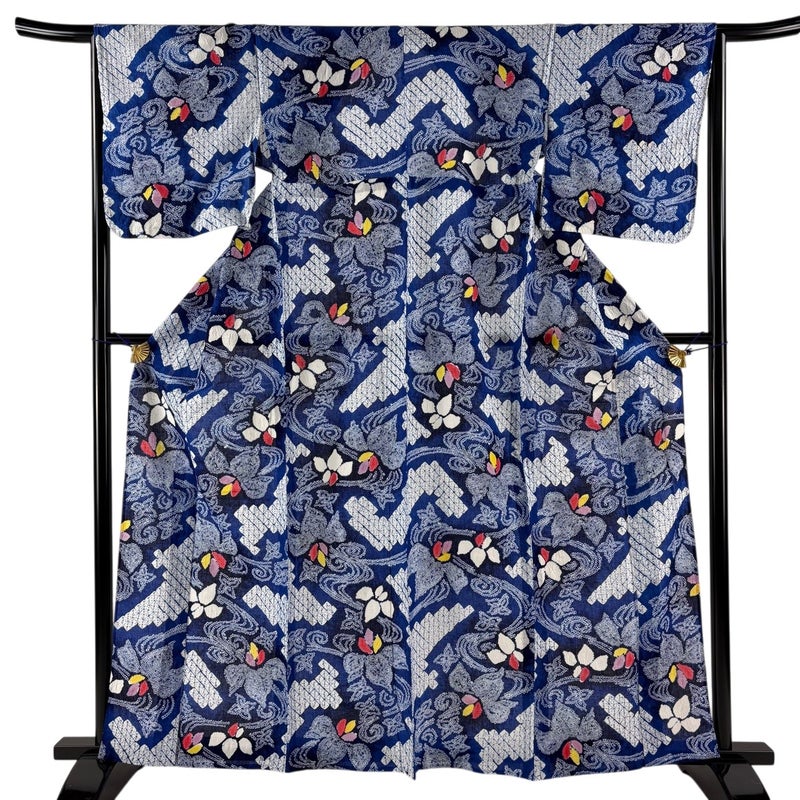 【着物ランク】名品 【素材】綿 【身丈】約160cm 【裄丈】約65cm 【袖丈】約48.5cm 【袖幅】約33.5cm 【前幅】約23.5cm 【後幅】約30cm 【サイズ】M 【状態ランク】ランクB 【着物着用シーン】お洒落着用、カジュアル