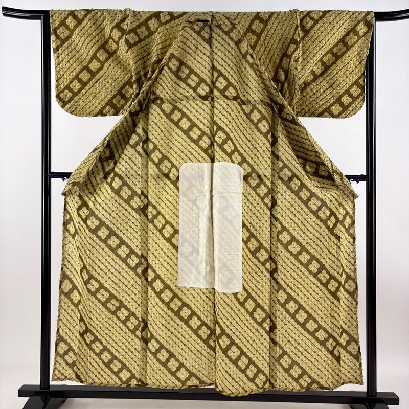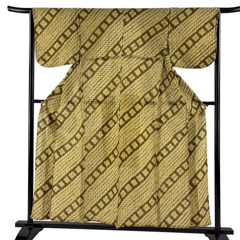 【浴衣】 茶系 茶緑色 名品 B 約150cm~約159cm 裄丈63cm-64cm (M)size 袖丈46cm以下 9990-29990 五万以下