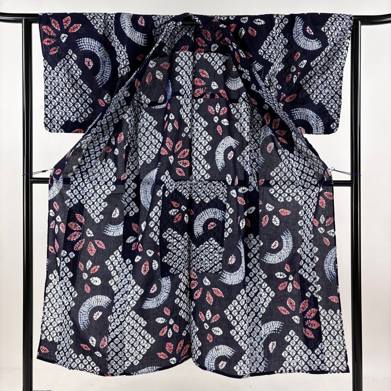 【浴衣】 青系 濃紺 名品 A 約140cm~約149cm 裄丈62cm以下 (S)size 袖丈48cm 9990-29990 美品 五万以下