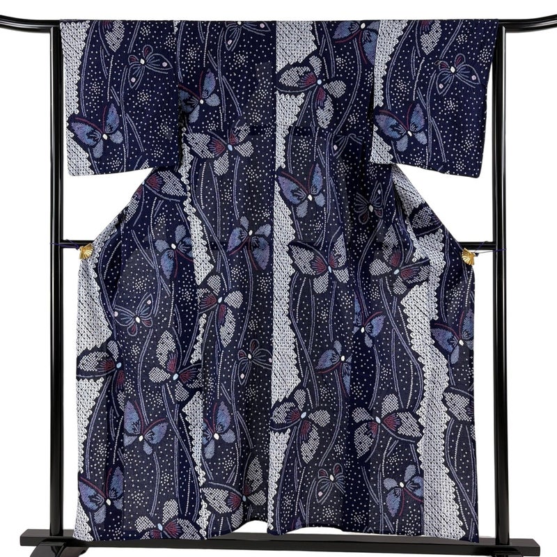【浴衣】 青系 紺色 名品 A 約150cm~約159cm 裄丈63cm-64cm (S)size 袖丈48cm 9990-29990 美品 五万以下