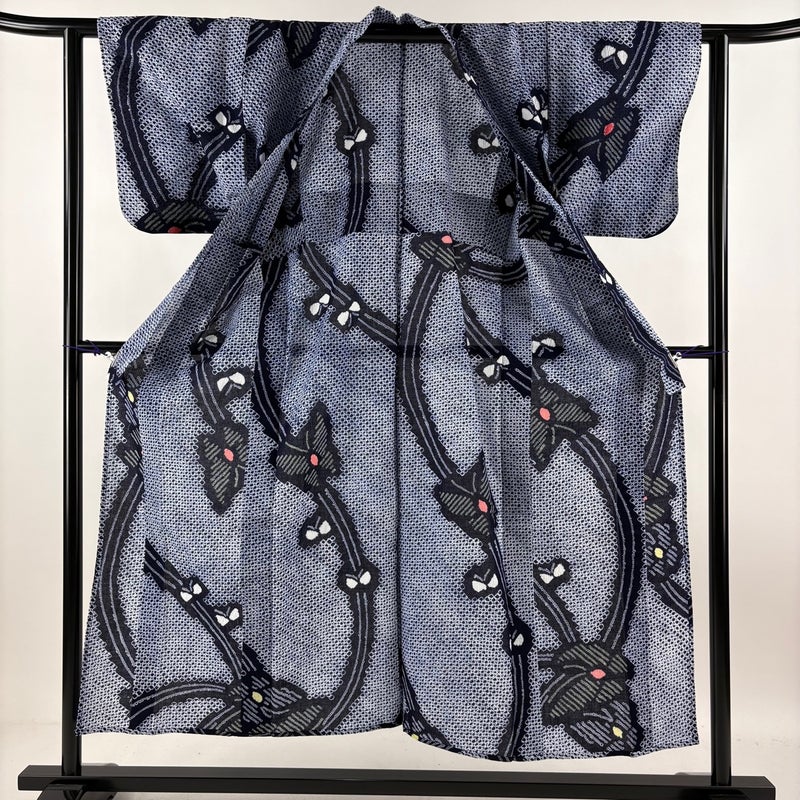 【浴衣】 青系 紺色 名品 A 約150cm~約159cm 裄丈62cm以下 (S)size 袖丈46cm以下 9990-29990 美品 五万以下
