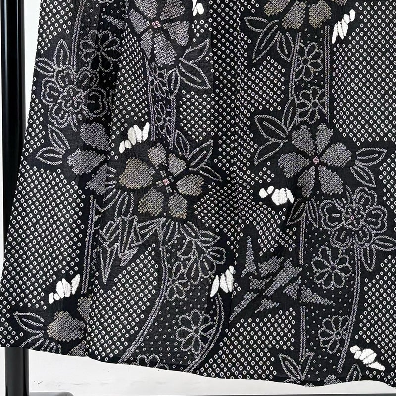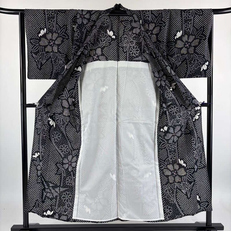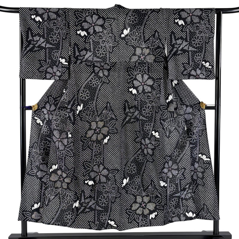 【浴衣】 黒系 黒 名品 A 約150cm~約159cm 裄丈63cm-64cm (M)size 袖丈48cm 9990-29990 美品 五万以下