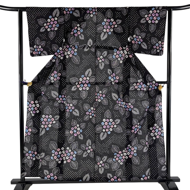 【浴衣】 黒系 黒 名品 A 約150cm~約159cm 裄丈62cm以下 (S)size 袖丈46cm以下 9990-29990 美品 五万以下