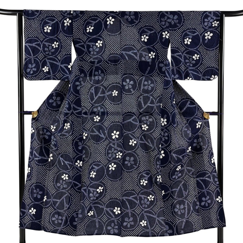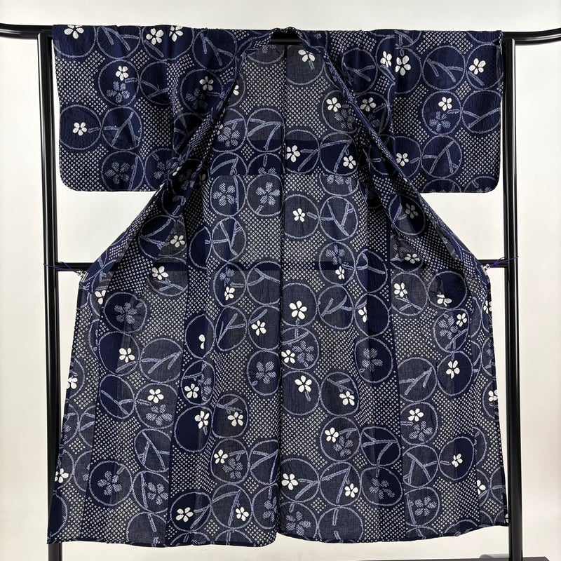 【浴衣】 青系 紺色 名品 A 約140cm~約149cm 裄丈63cm-64cm (S)size 袖丈46cm以下 9990-29990 美品 五万以下