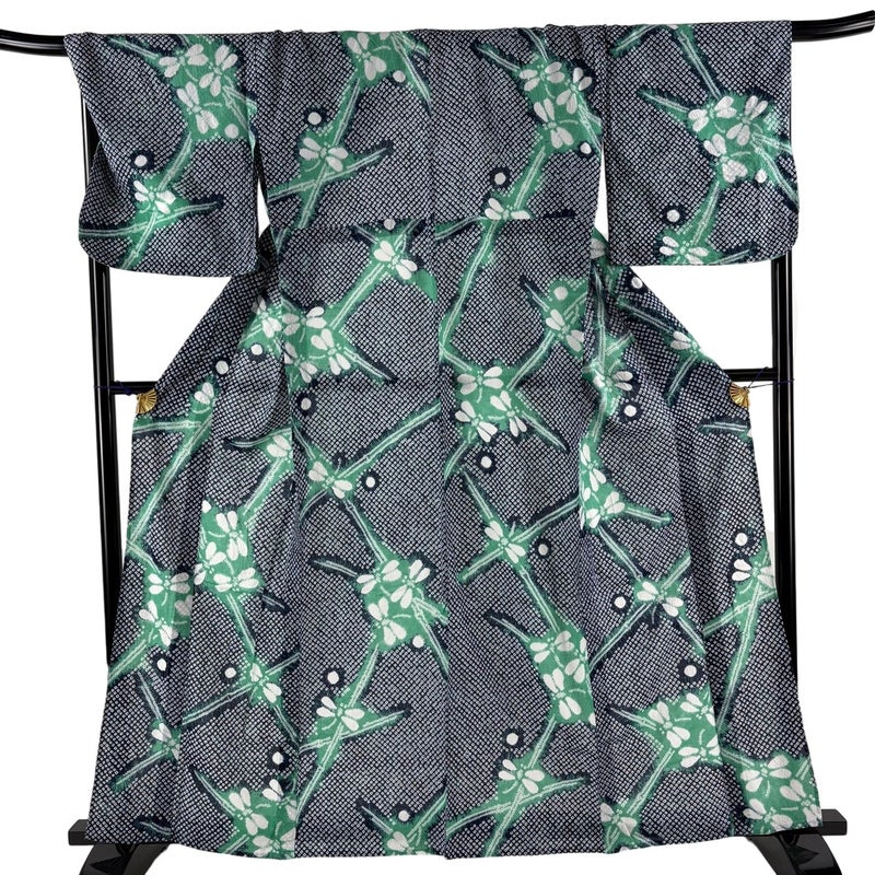 【浴衣】 青系 濃紺 名品 A 約150cm~約159cm 裄丈69cm以上 (L)size 袖丈46cm以下 9990-29990 美品 五万以下