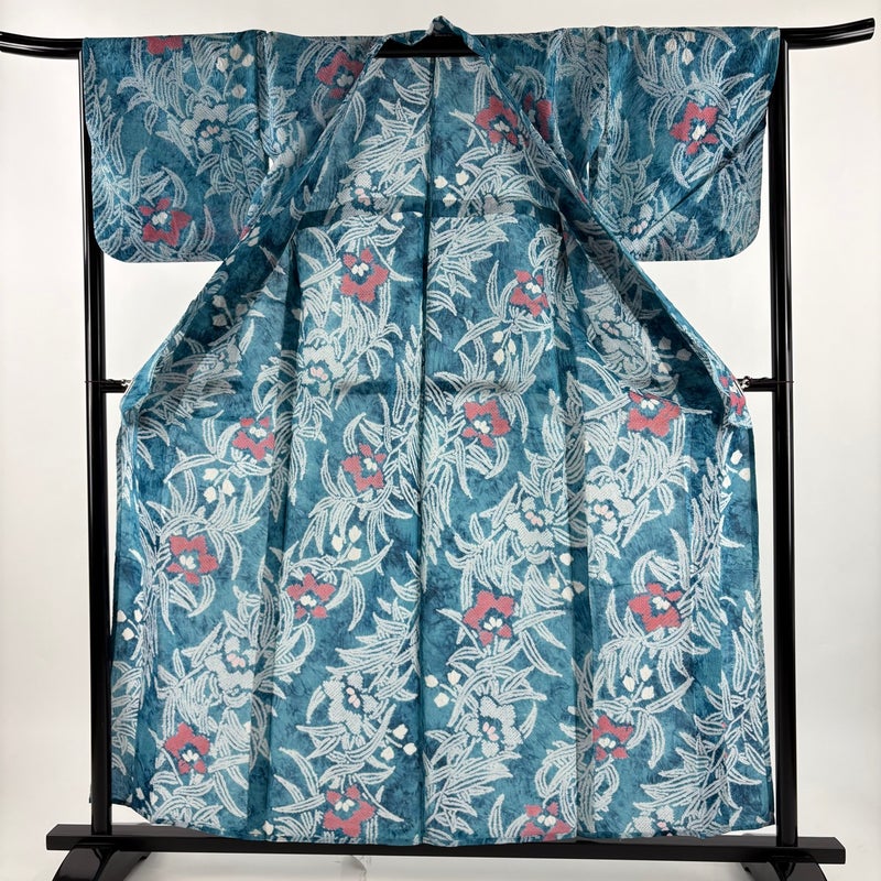 【浴衣】 青系 青緑 名品 B 約150cm~約159cm 裄丈63cm-64cm (M)size 袖丈46cm以下 9990-29990 五万以下