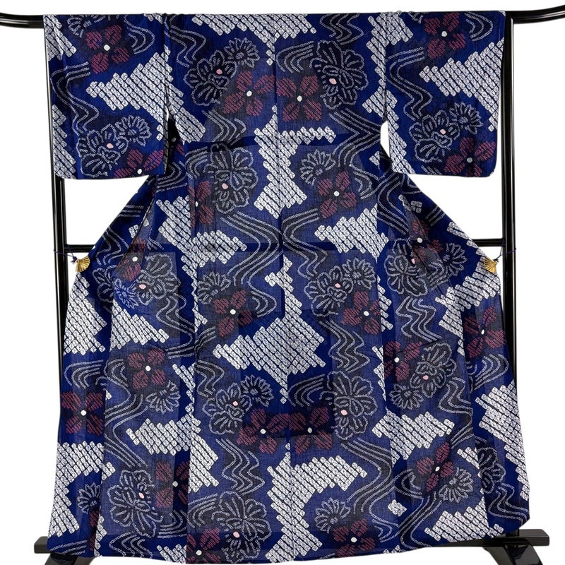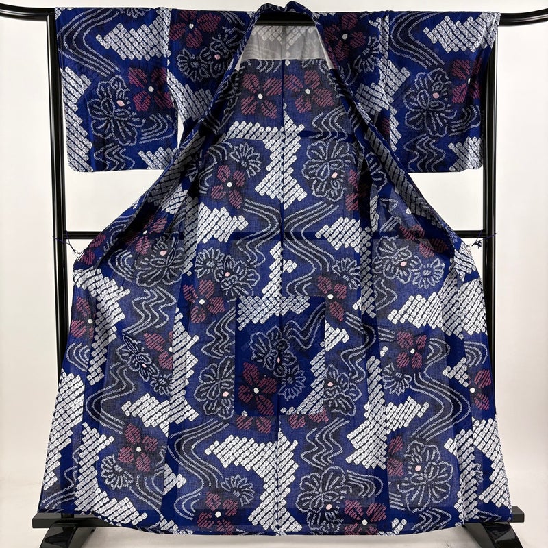 【浴衣】 青系 藍色 名品 A 約160cm~約169cm 裄丈66cm (M)size 袖丈48cm 9990-29990 美品 五万以下