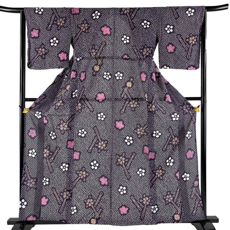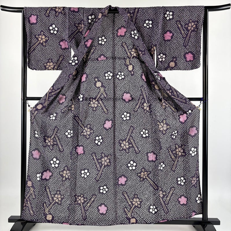 【浴衣】 紫系 紫 名品 A 約160cm~約169cm 裄丈65cm (M)size 袖丈47cm 9990-29990 美品 五万以下