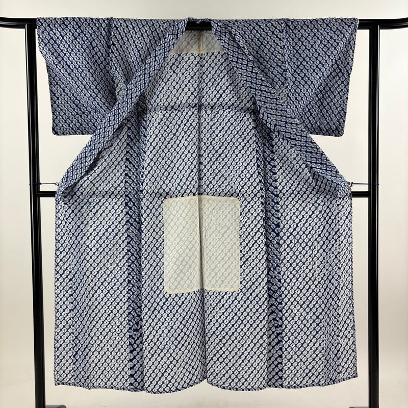 夏のお洒落着として、夏祭りや花火大会、盆踊りなど多くの場面でお召し頂ける夏の定番浴衣です。 小物をアレンジすることで何通りにも着こなすことが出来る一品です。 ※身丈・裄丈の縫込みの長さは測っておりません。 上前と後身頃の裾付近と右胸にシミ、右衿先に薄いシミ、全体所々にシワがございます。 裏地所々と居敷当て所々にシミがございます。 リユース品としては良い状態で、まだまだご活用頂けると思われます。 ※なお、厳しく商品の状態確認を行っておりますが、記載の汚れ以外にも見落とし箇所がある可能性がある旨ご了承いただけますと幸いです。 沢山の商品の中からご覧いただき誠にありがとうございます。