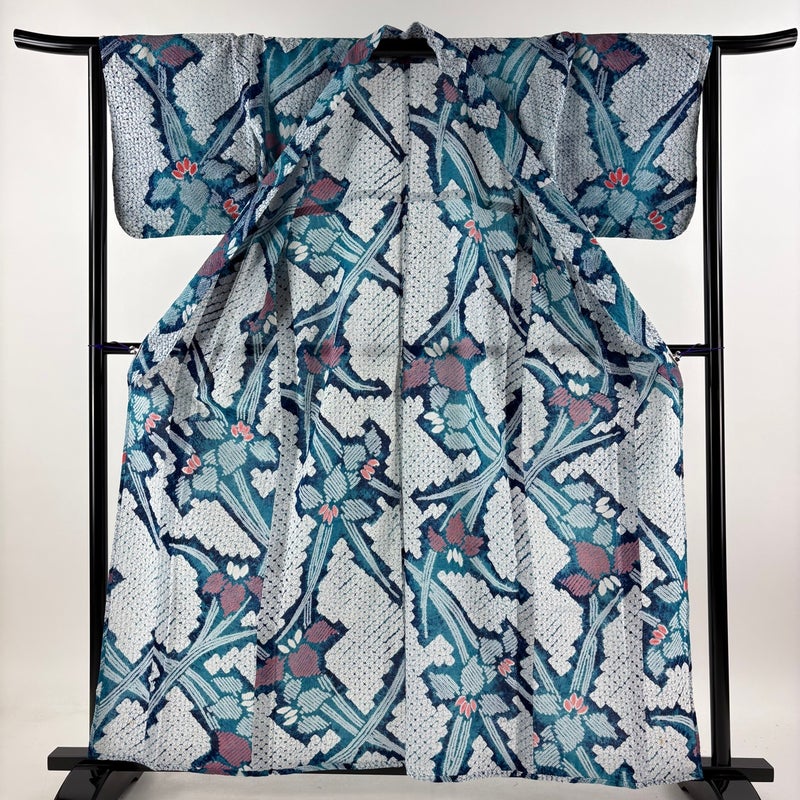 【浴衣】 青系 青緑 名品 B 約150cm~約159cm 裄丈63cm-64cm (M)size 袖丈46cm以下 9990-29990 五万以下