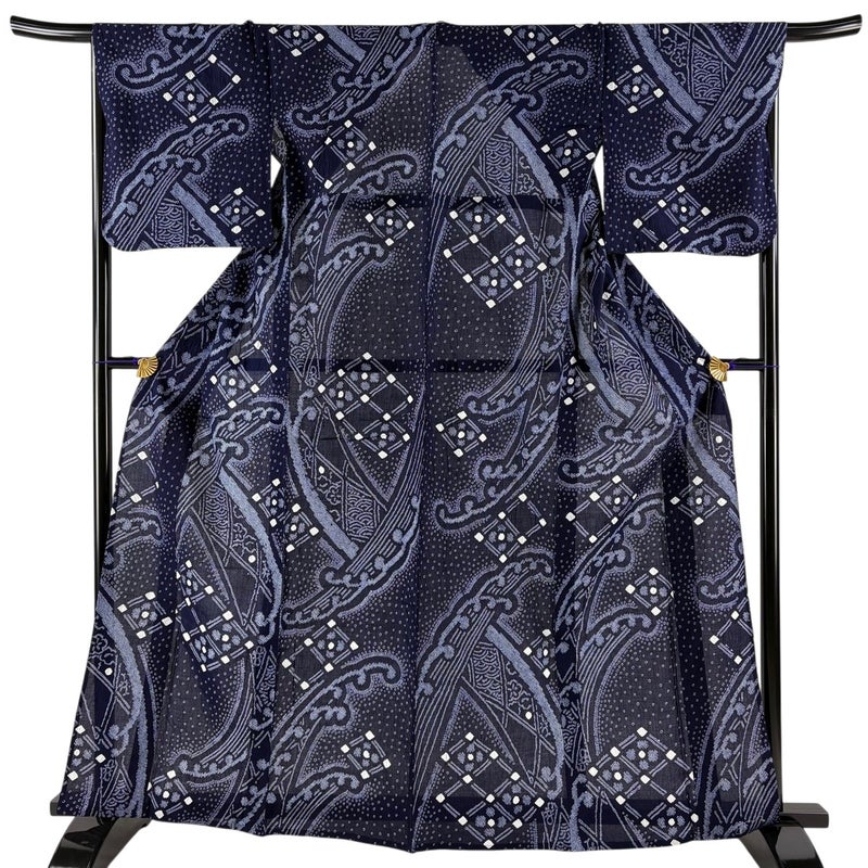 【浴衣】 青系 濃紺 名品 A 約160cm~約169cm 裄丈66cm (M)size 袖丈46cm以下 9990-29990 美品 五万以下