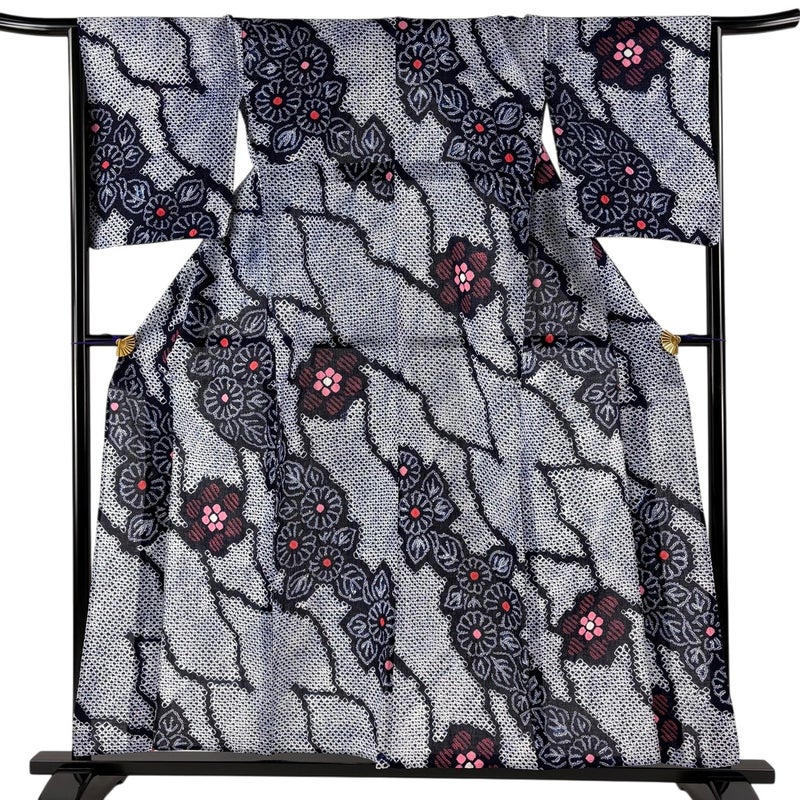 【浴衣】 青系 濃紺 名品 A 約150cm~約159cm 裄丈65cm (M)size 袖丈48cm 9990-29990 美品 五万以下