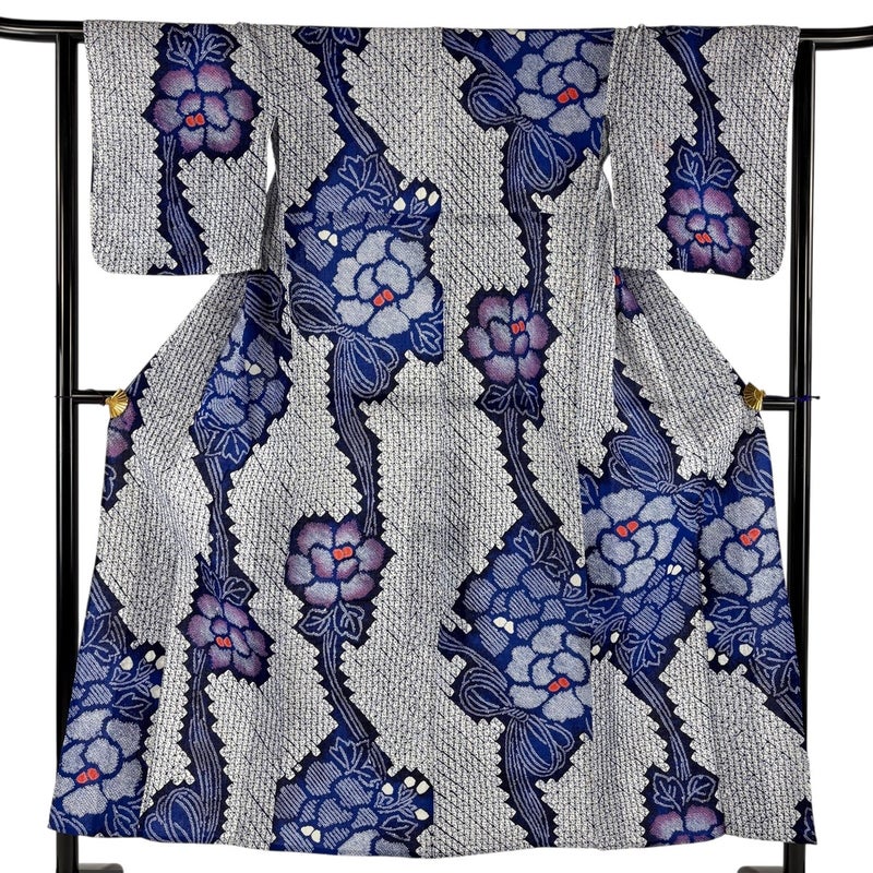 【着物ランク】名品 【素材】綿 【身丈】約152cm 【裄丈】約64cm 【袖丈】約46cm 【袖幅】約34.5cm 【前幅】約24.5cm 【後幅】約30.5cm 【サイズ】M 【状態ランク】ランクB 【着物着用シーン】お洒落着用、カジュアル