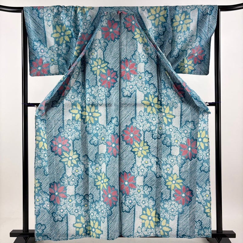 【浴衣】 青系 青緑 名品 B 約160cm~約169cm 裄丈65cm (M)size 袖丈49cm 9990-29990 五万以下